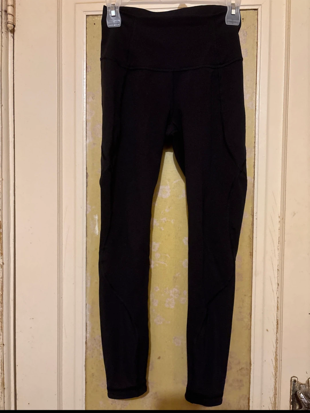 Kick your fitness goals into high gear with these used Lululemon leggings, size 4! Perfect for yoga, running, or just lounging around, these leggings are in good condition and ready for their next adventure. The breathable fabric and stylish design make them a must-have for any active wardrobe.