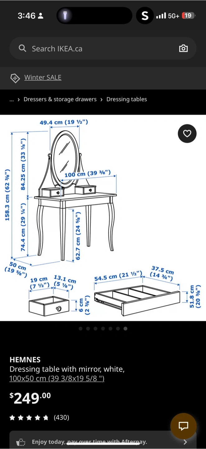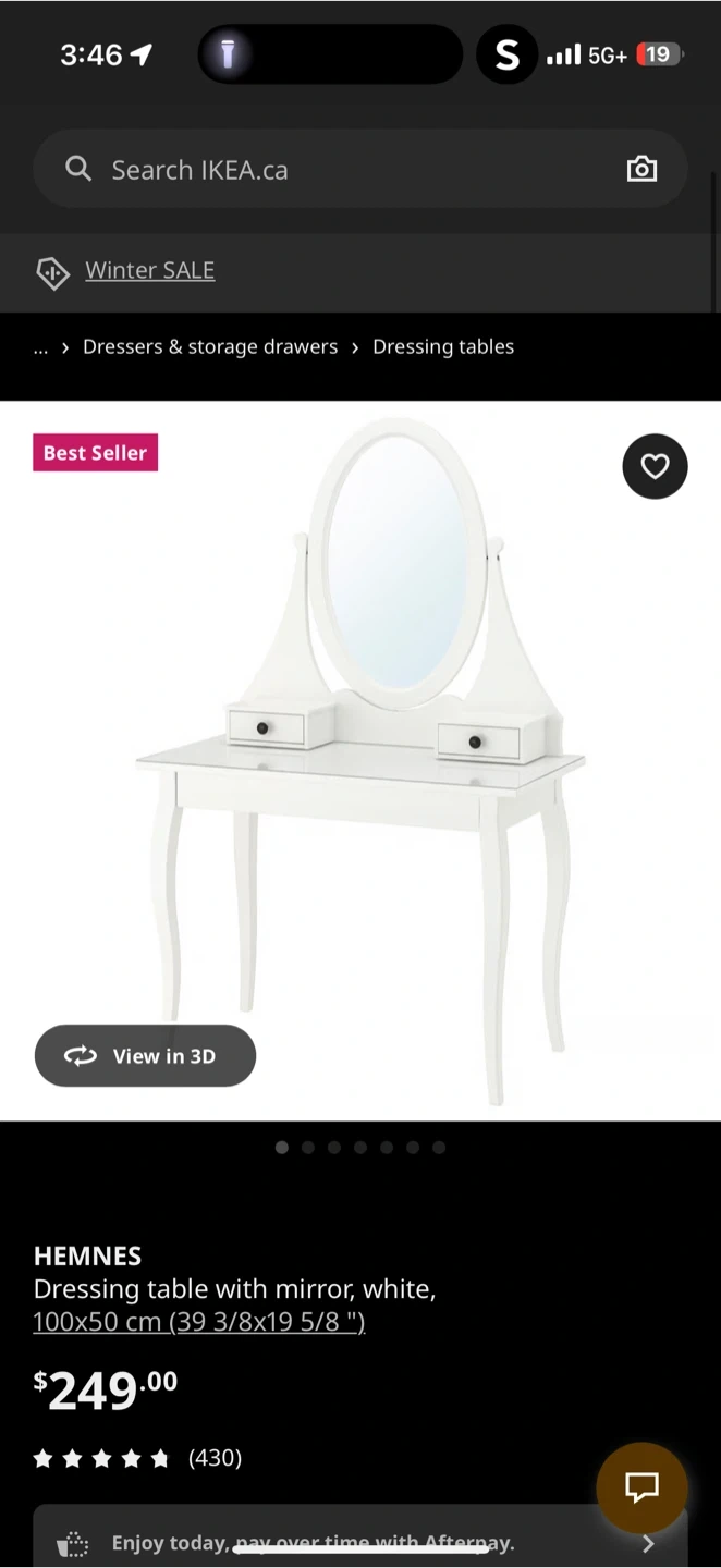 Selling a lovely white Hemnes dressing table from IKEA! It comes with a mirror and has a classic, elegant look. The dimensions are 100x50 cm (39 3/8x19 5/8 "). Such a beautiful piece for any bedroom or dressing area!