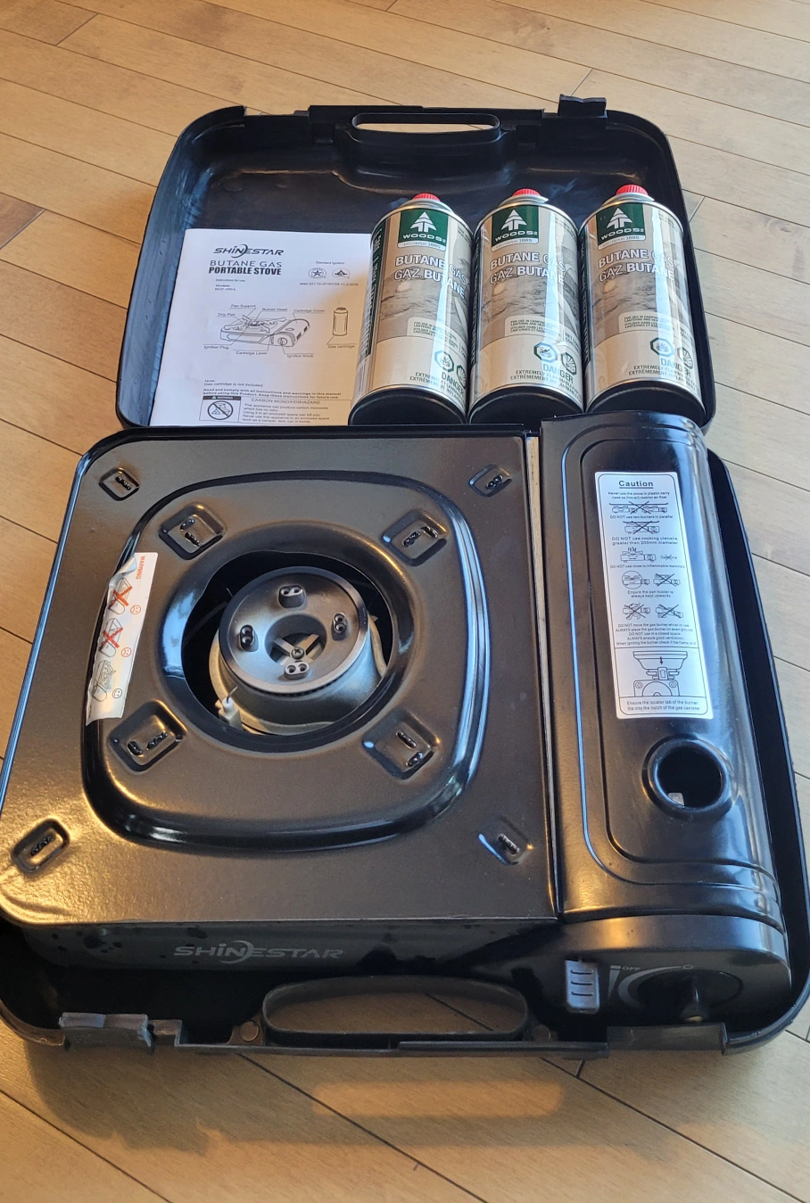 ShineStar Portable Gas Stove Burner + Woods butane gas canisters