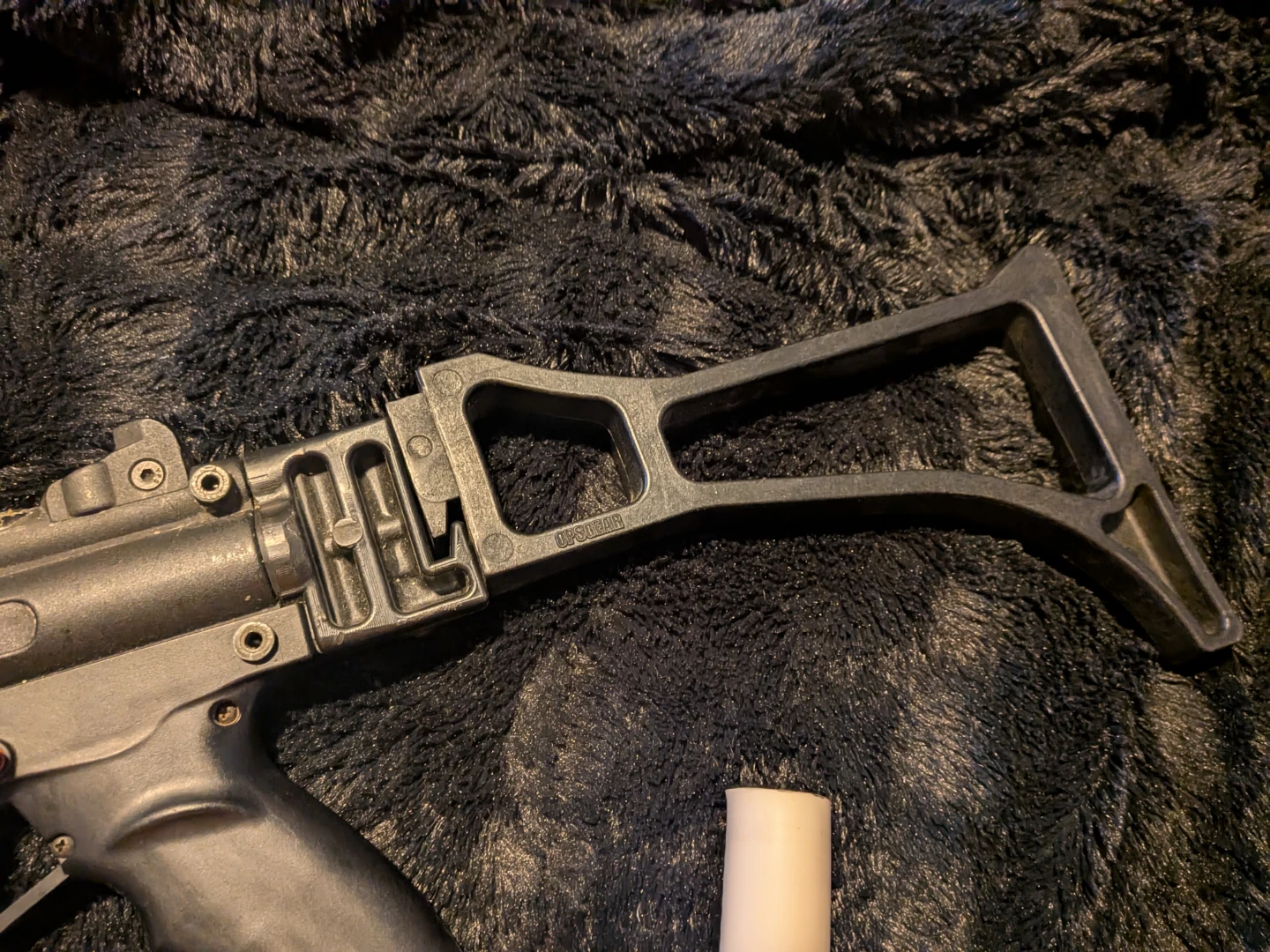 Selling a used tippman paintball gun with red dot sight that comes with a mask, hopper, several quick load canisters, and a folding stock, upgraded springs. Ready for C02 or nitrous. It's in good condition and ready for some action!