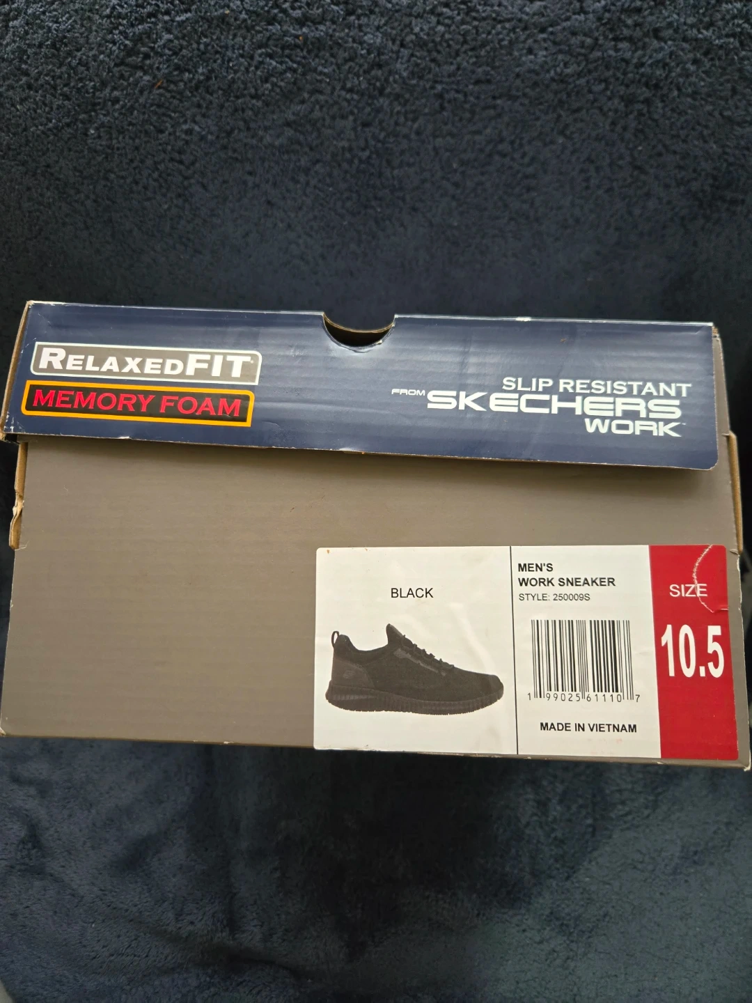 Men's black Skechers Work slip-resistant sneakers. Features memory foam cushioning for comfort. Comes in original box. Made in Vietnam. Original price $144