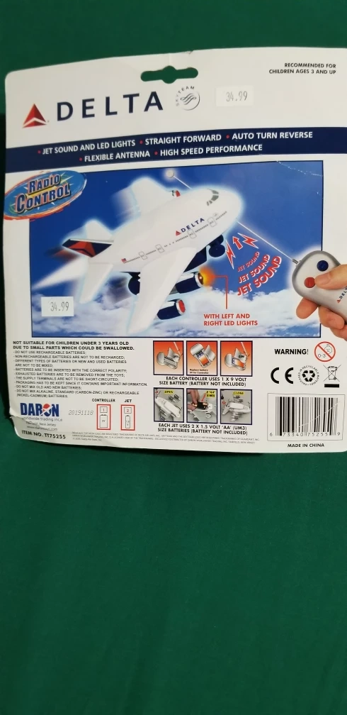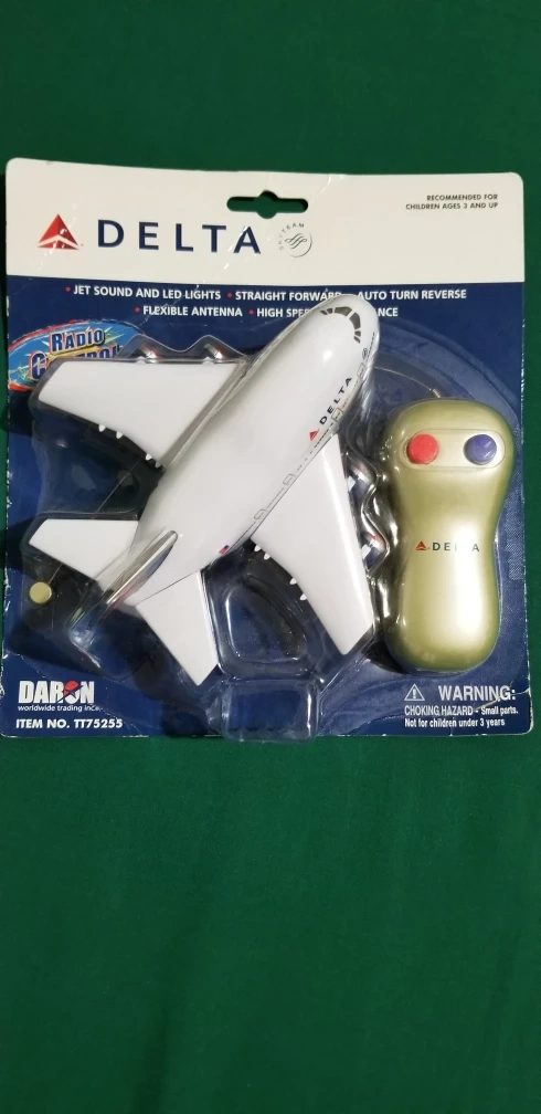 I'm selling a brand new Delta Radio Control Airplane. It's still in its original packaging! It features jet sound and LED lights, a straight forward design, auto turn reverse, a flexible antenna, and high speed performance. Recommended for ages 3 and up. Item No. 1175255