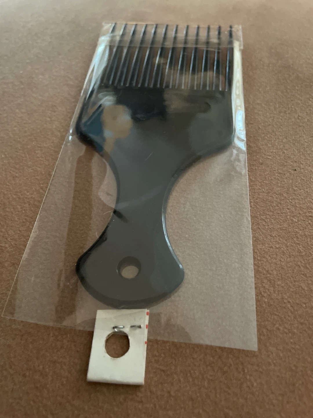 I'm selling a brand new black hair pick comb still in its original packaging! It's perfect for creating volume and defining curls