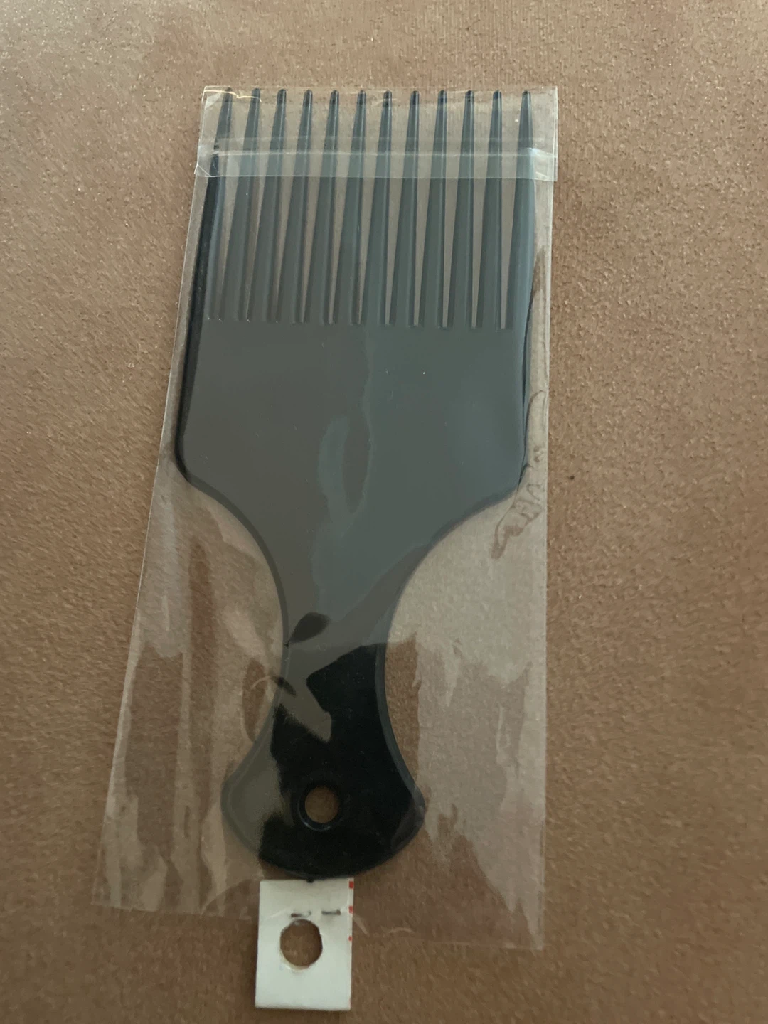 I'm selling a brand new black hair pick comb still in its original packaging! It's perfect for creating volume and defining curls