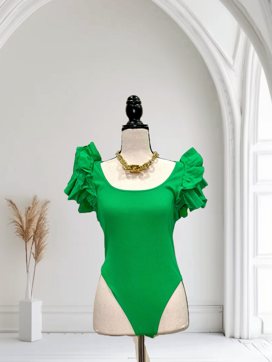 Green Ruffle Sleeve Bodysuit