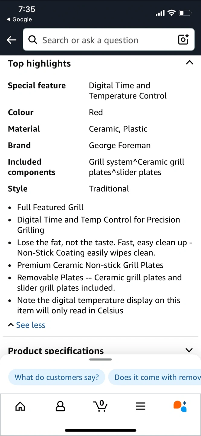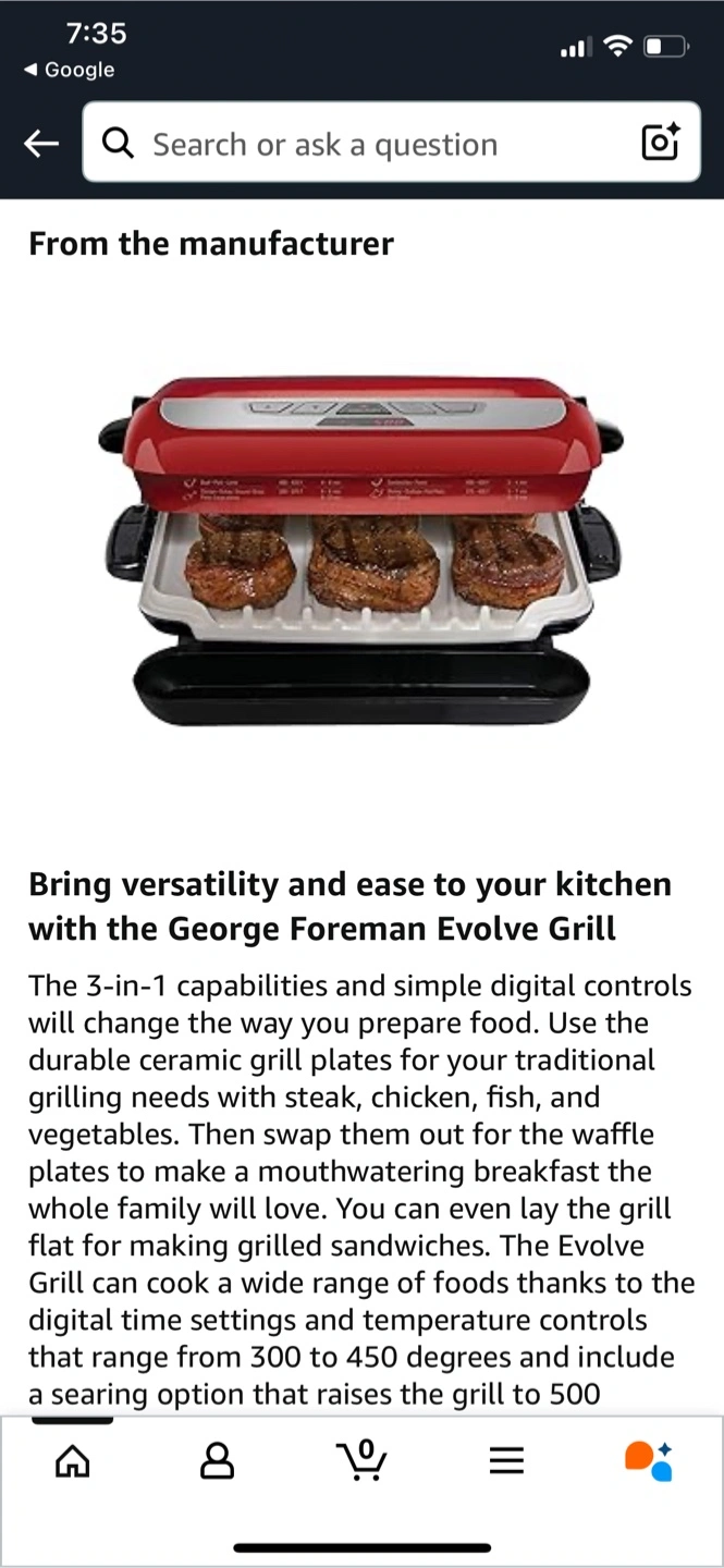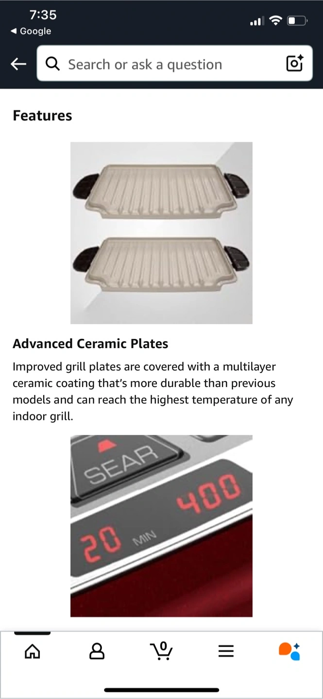 Versatile 3-in-1 indoor grill. Features digital time and temperature controls. Durable ceramic grill plates included. Easy to clean. Great for making everything from grilled sandwiches to steaks.