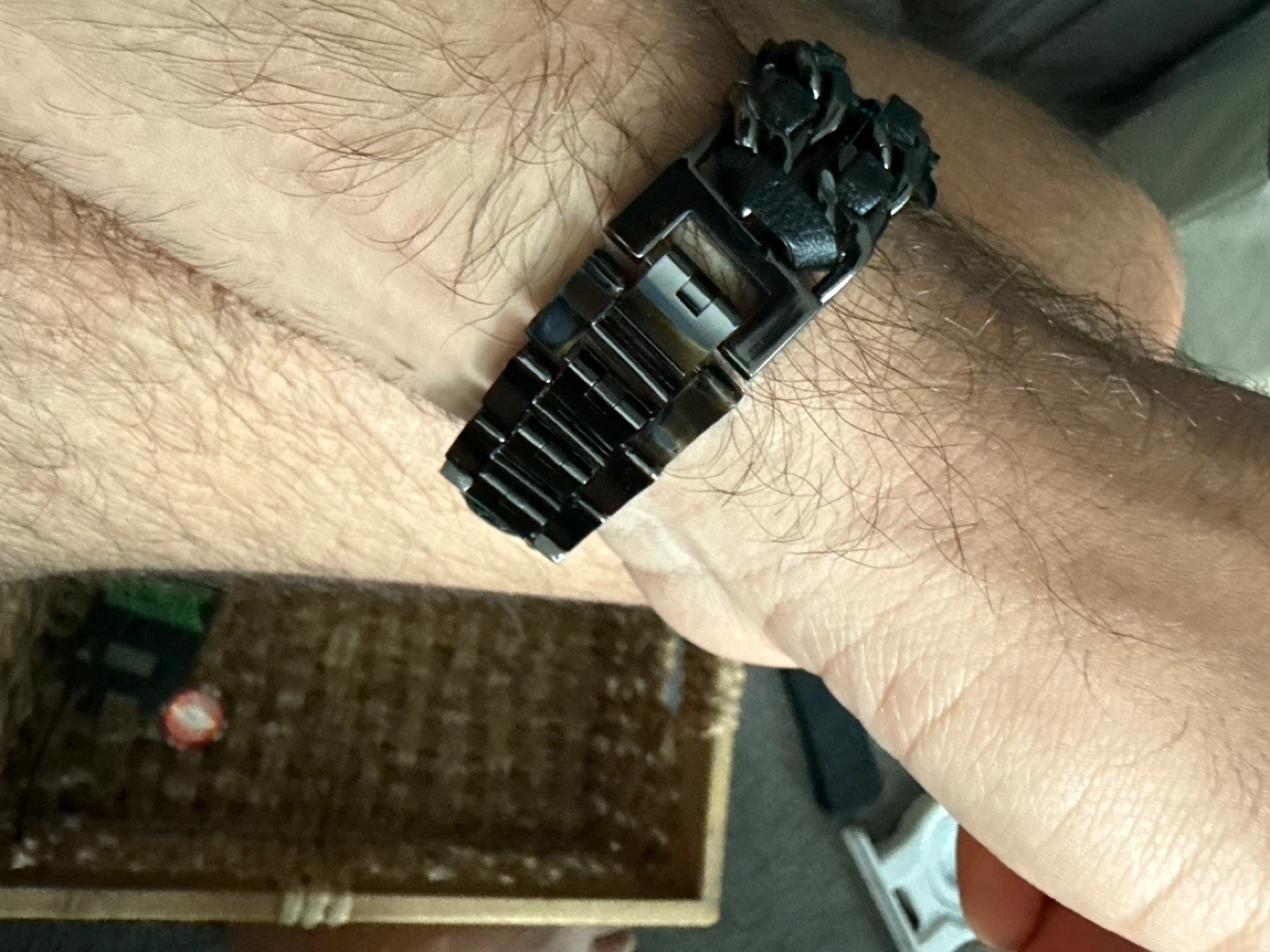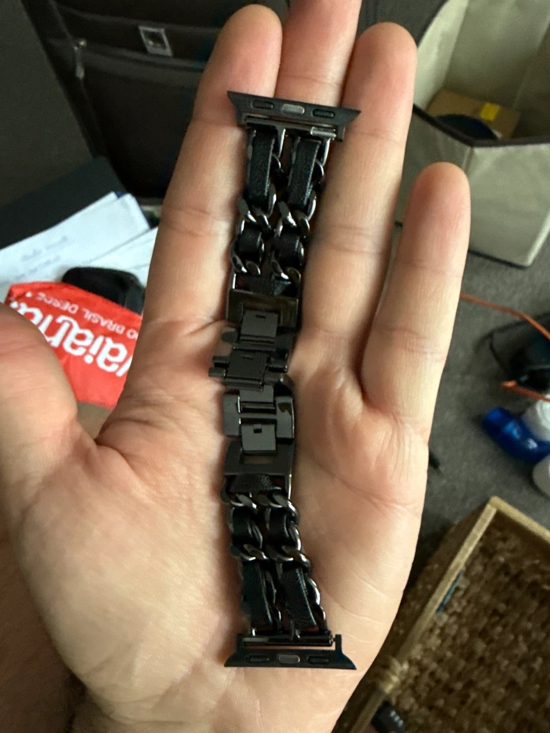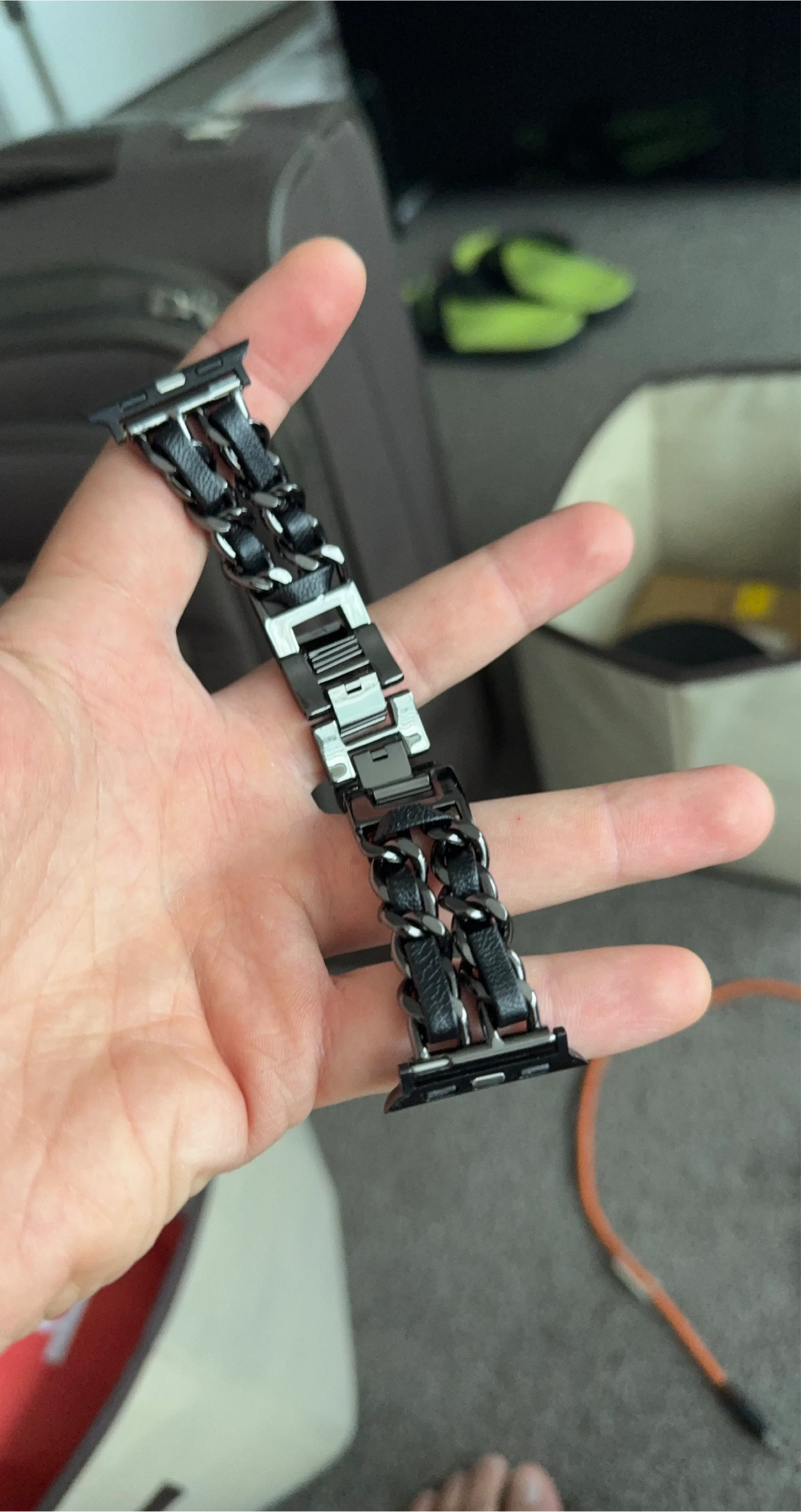 Selling a black Apple Watch 42mm band in great condition! It's a stylish way to change up the look of your Apple Watch. If you're interested, send me a message!