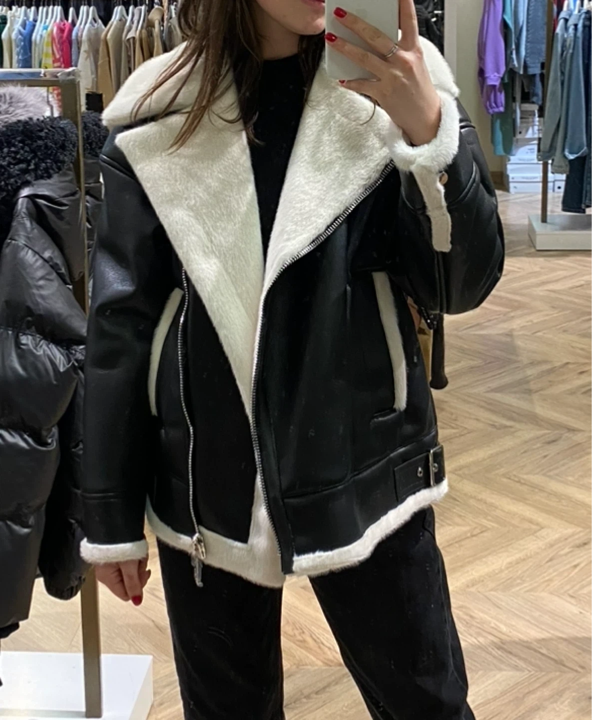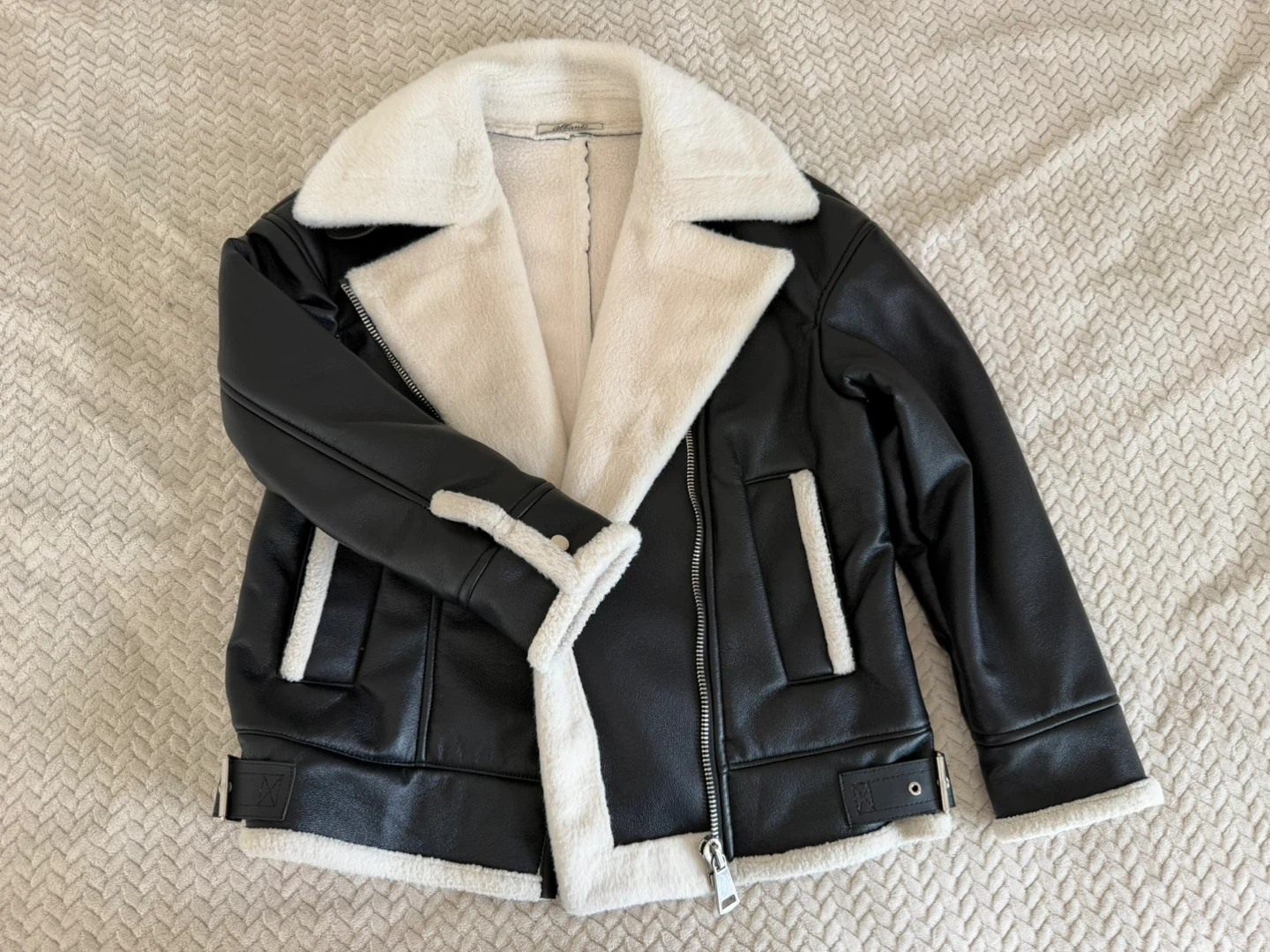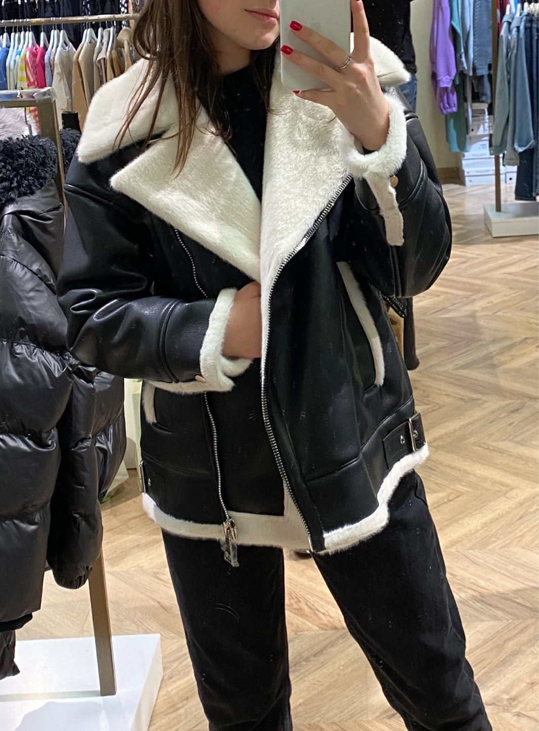 Leather jacket made of genuine leather and natural mink fur for winter and fall. Size xs-s. Oversized.