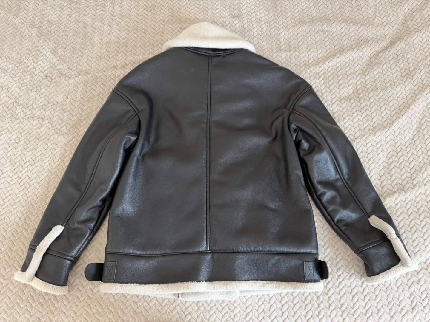 Leather jacket made of genuine leather and natural mink fur for winter and fall. Size xs-s. Oversized.