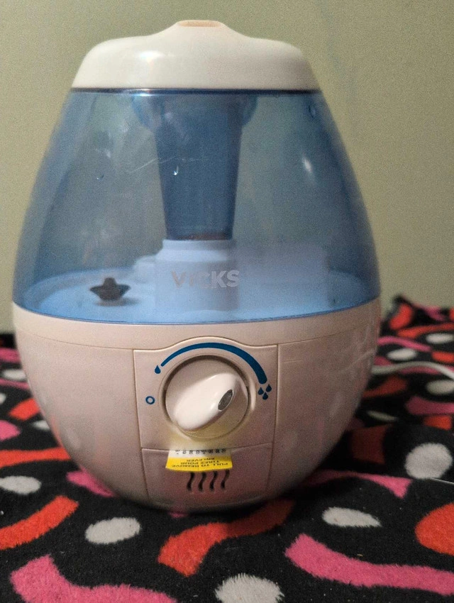 I'm selling a Vicks humidifier that adds soothing moisture to the air, helping to relieve cough and congestion symptoms. This humidifier is perfect for bedrooms or small spaces, providing a comfortable environment during cold and flu season. The unit features a variable humidity control and a transparent tank to easily monitor water levels. You Can add essence of your choice.