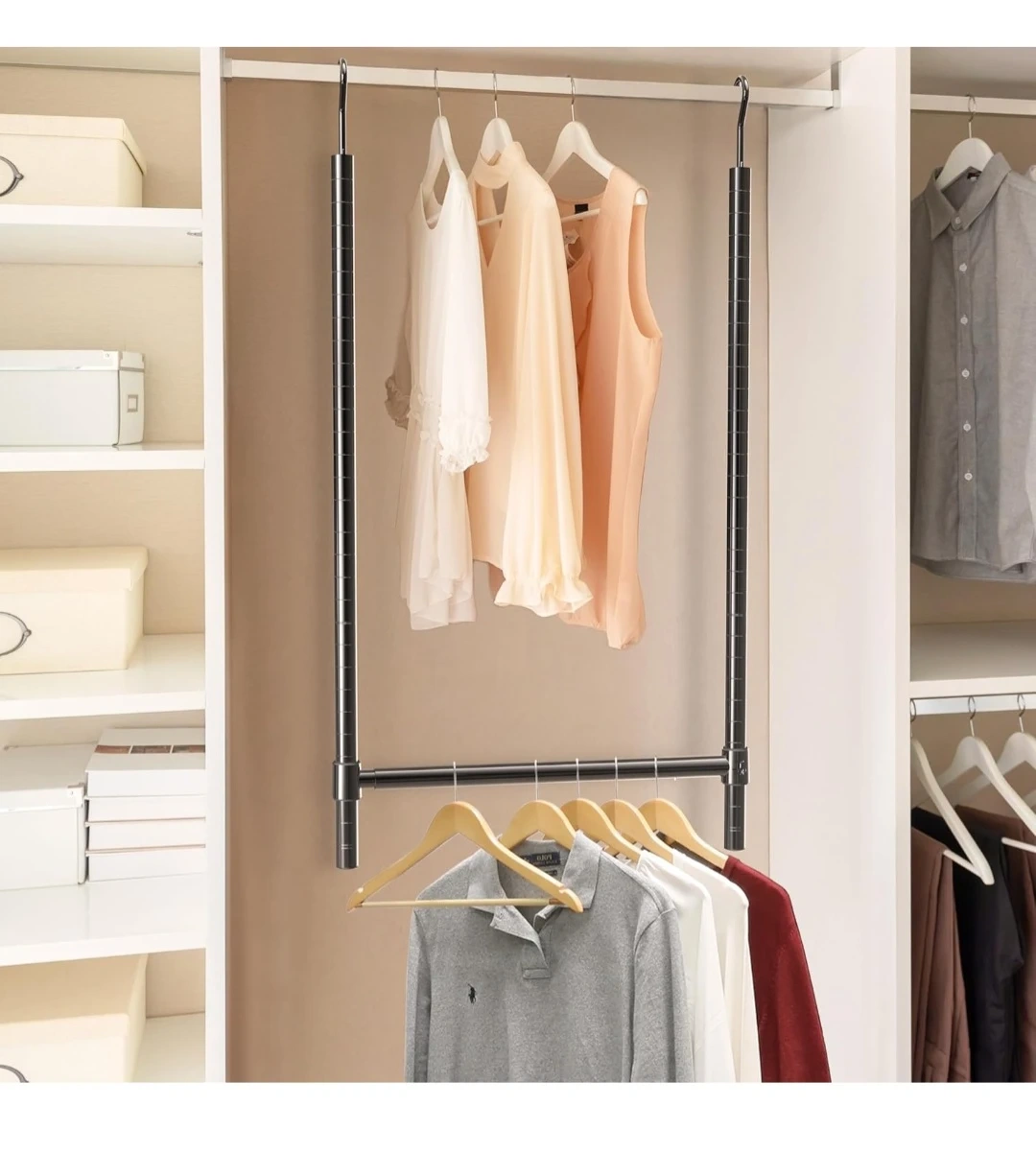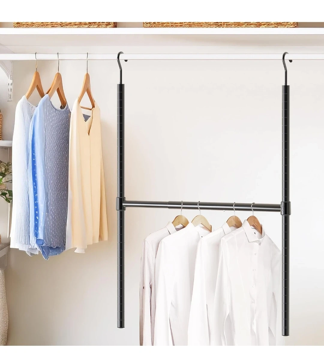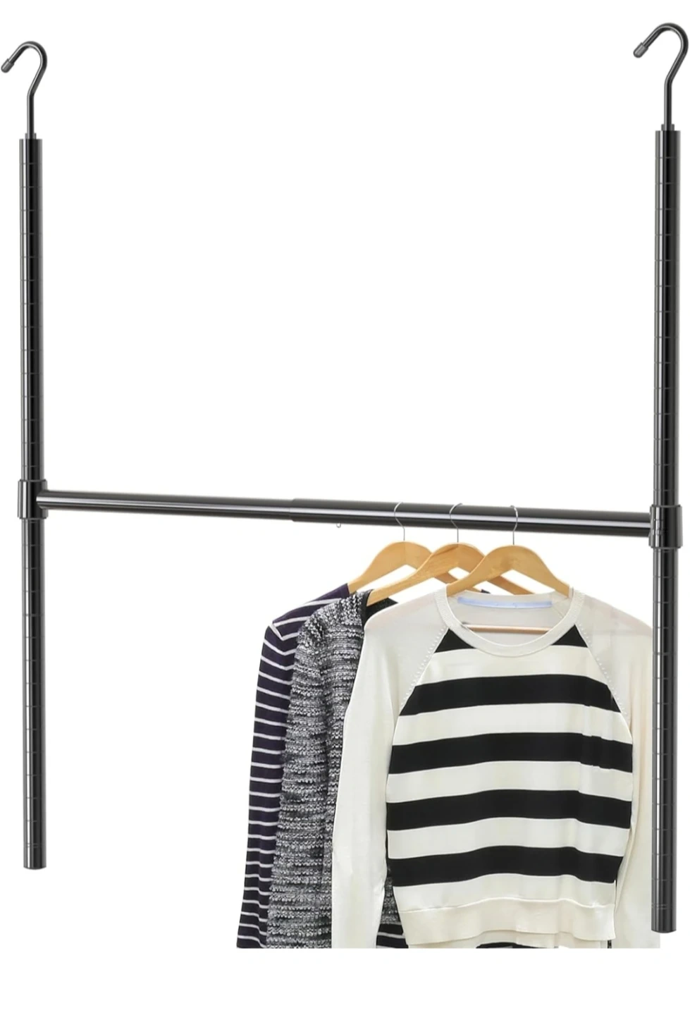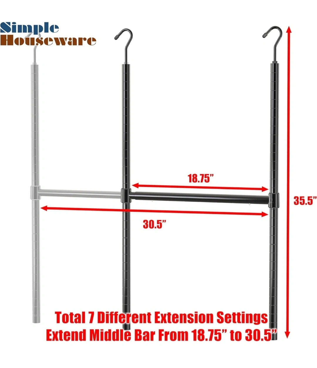 This closet hanging extention from Simple Houseware provides extra hanging space. The middle bar is adjustable to suite your needs.This rod is useful for organizing clothing in any closet!