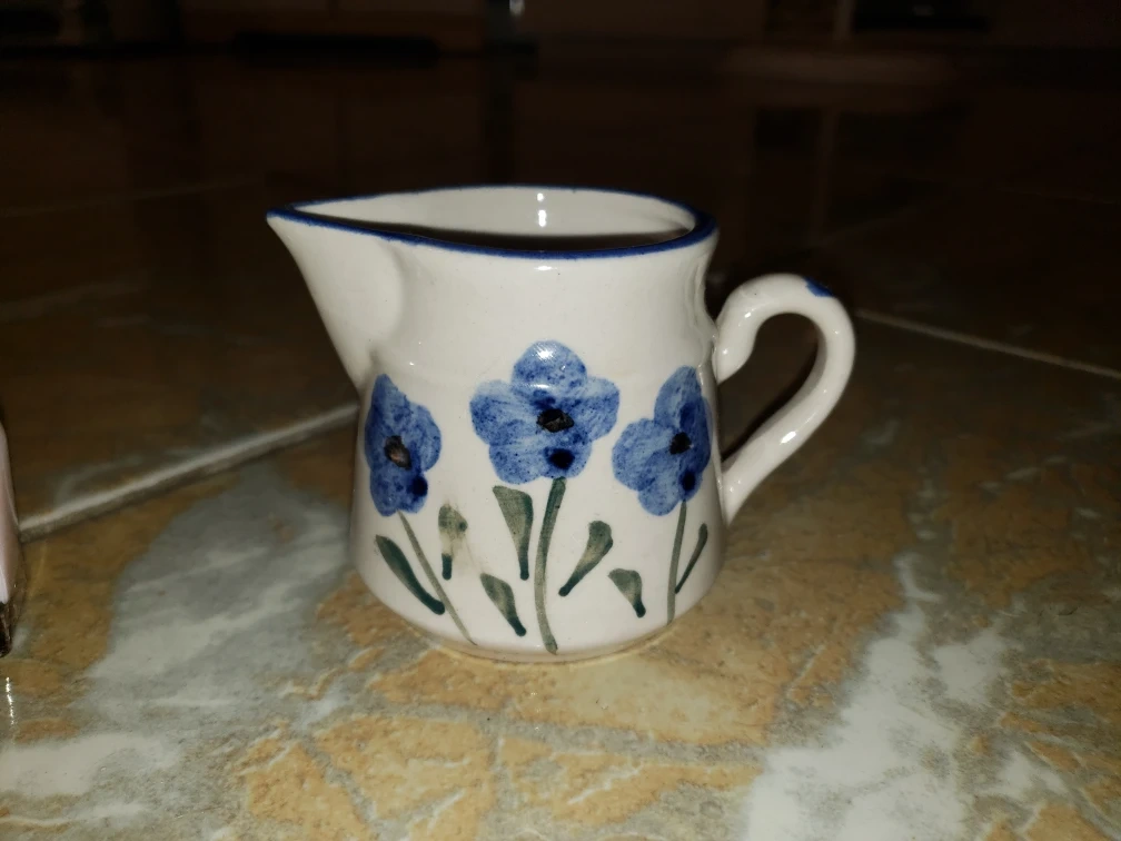Ceramic Creamer Pitcher with Blue Floral Design. A good addition to cottage core decor π