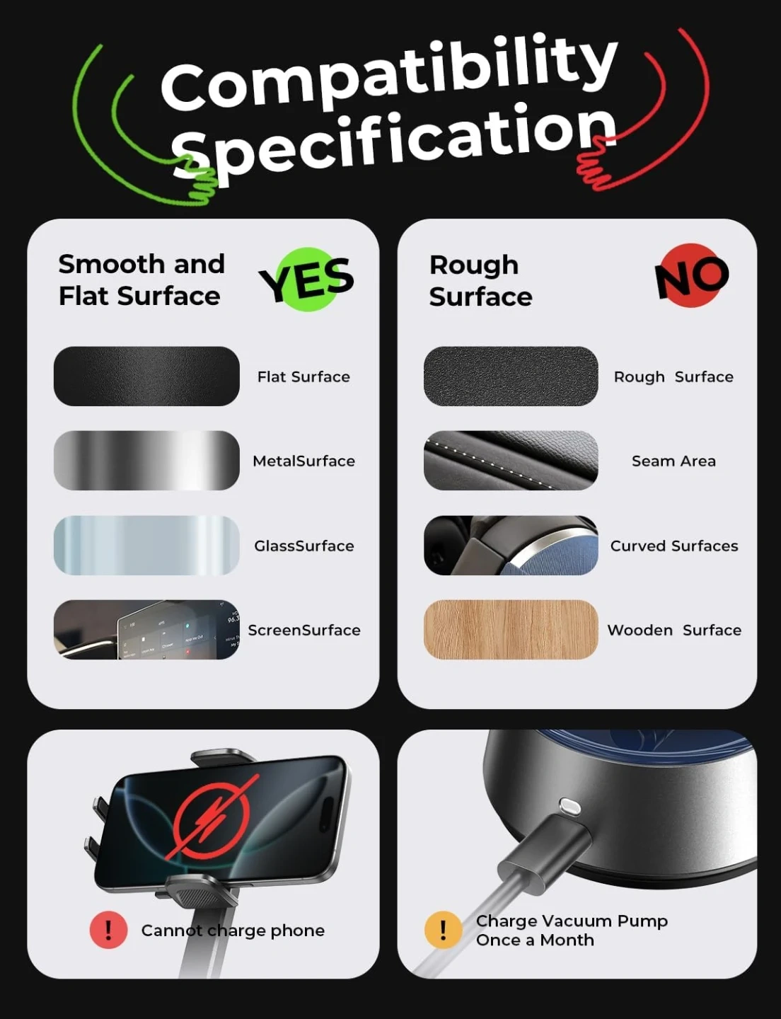 LISEN Electric Retractable Car Phone Mount, iPhone Vacuum Electric Suction Cup Phone Mount, Suction Cup Magnetic Phone Holder, only for Mirror, for iPhone 17 Pro Max Plus 16 15 ~ X, Samsung Galaxy S25