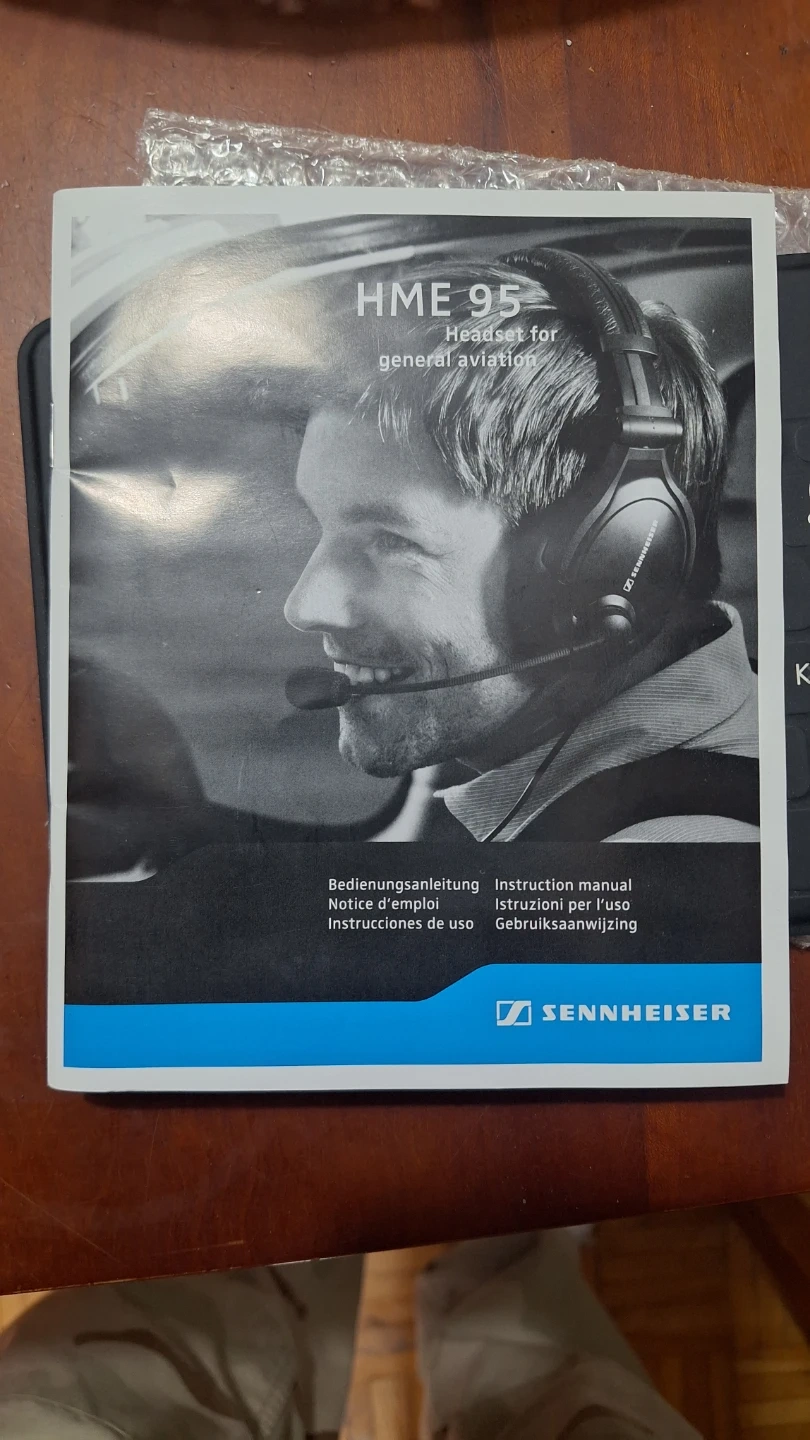 Sennheiser HME 95 headset for general aviation. Includes a carrying case and instruction manual. For use in aircraft.