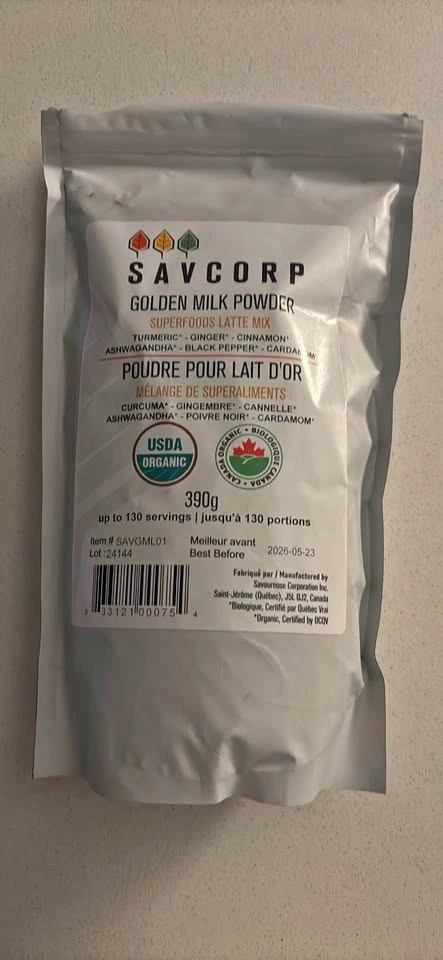 Savcorp Golden Milk Powder Superfood Latte Mix - made in Canada (QC), organic. Expires May 23, 2026. Only used one scoop. Sells new for $22 + shipping. Pickup near Warden and Kingston, $10 OBO.
