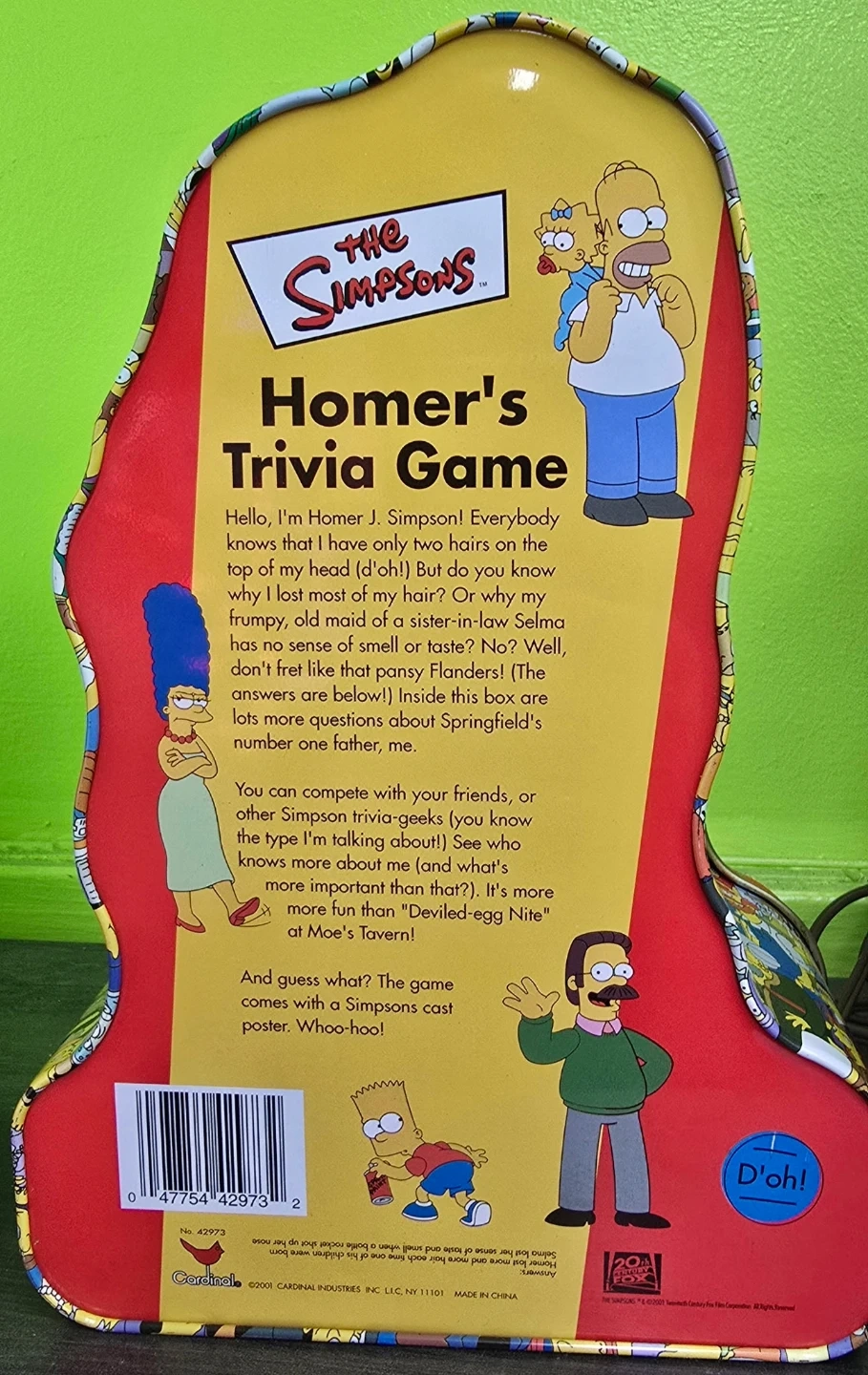 Fun and collectible The Simpsons trivia game featuring Homerβs iconic head-shaped tin! A great piece for fans, collectors, or anyone who loves game nights.