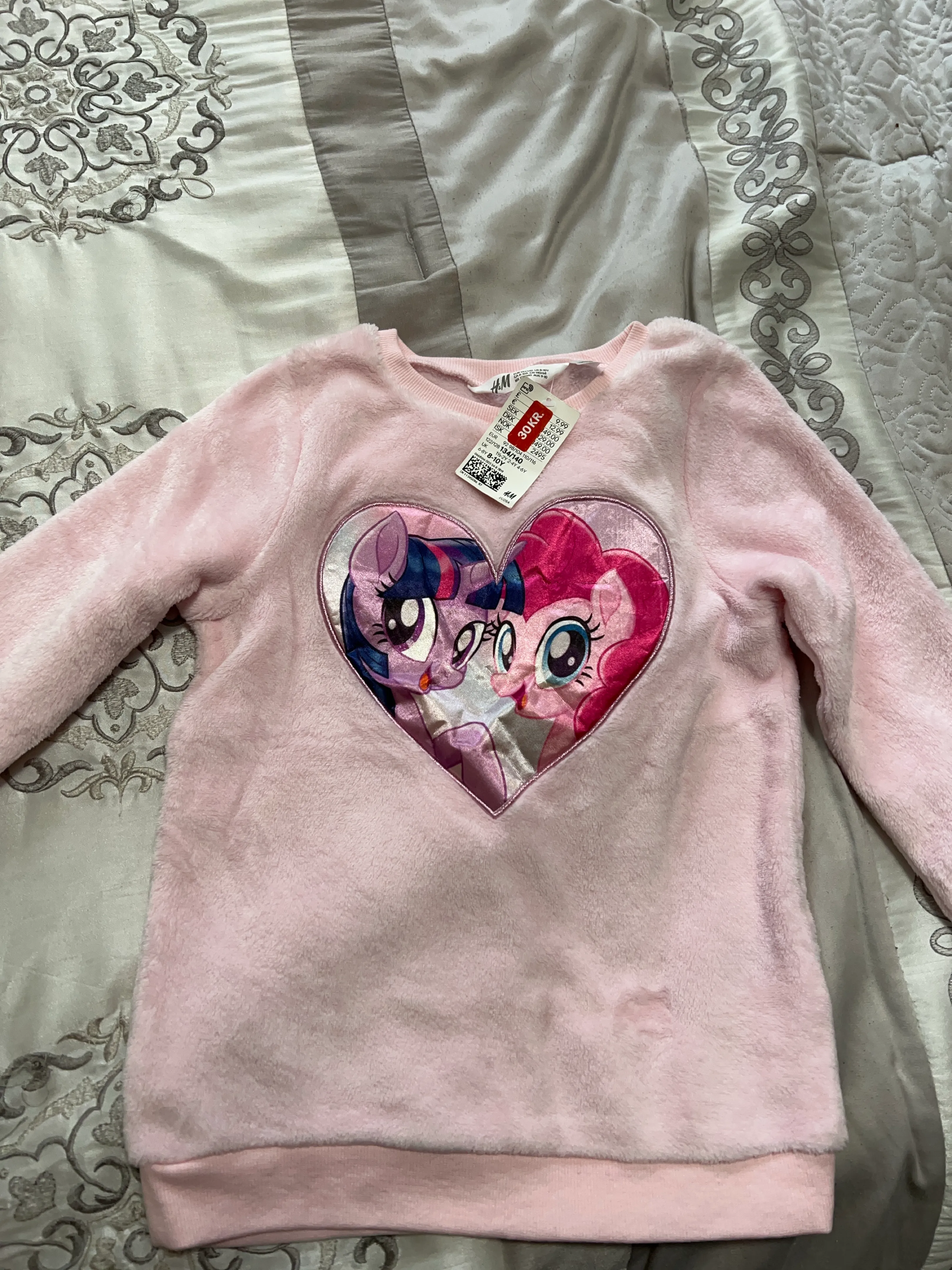 Adorable pink fleece sweatshirt. Features My Little Pony Twilight Sparkle and Pinkie Pie in a heart design. Soft and cozy material. Great for cooler weather.