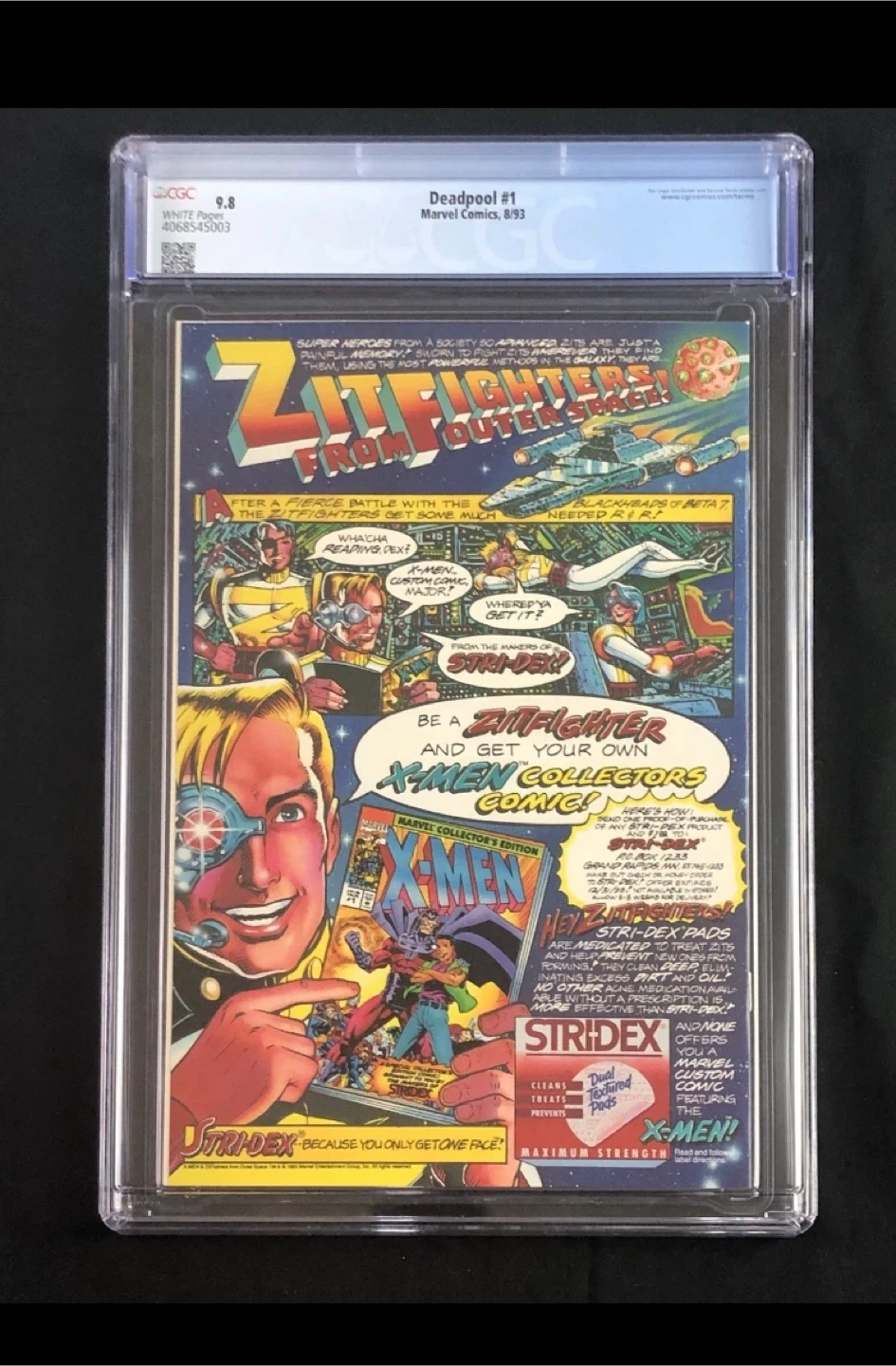 Deadpool #1 comic from Marvel Comics, published in August 1993. Graded CGC 9.8 Universal Grade. This copy features the 'The Circle Chase' storyline. It's presented in a protective CGC case.