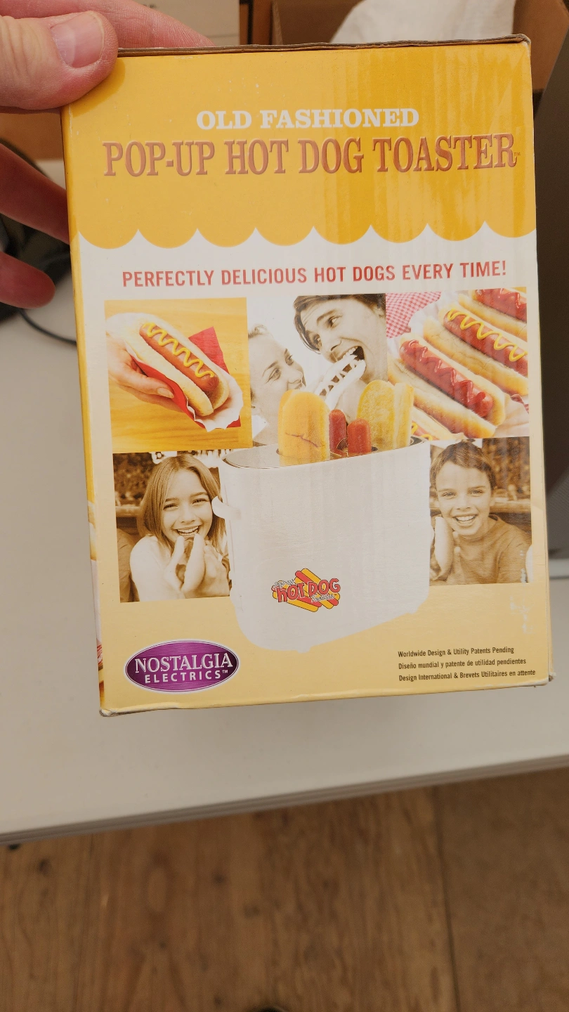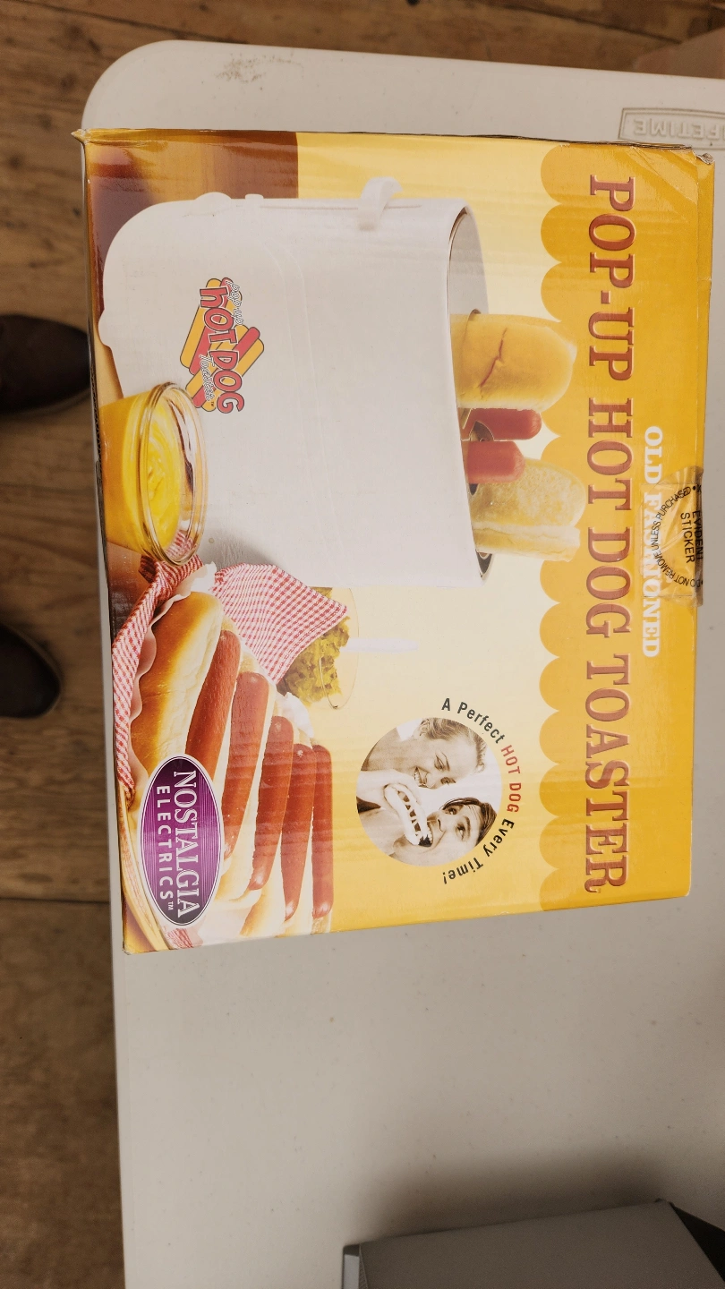 Old-fashioned pop-up hot dog toaster. Makes perfectly delicious hot dogs every time. Brand new in box.