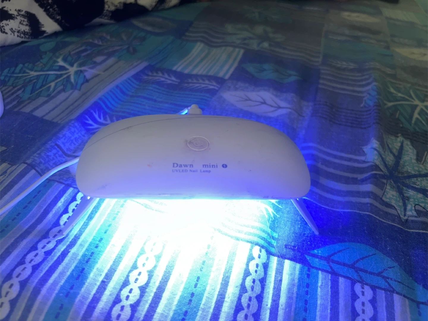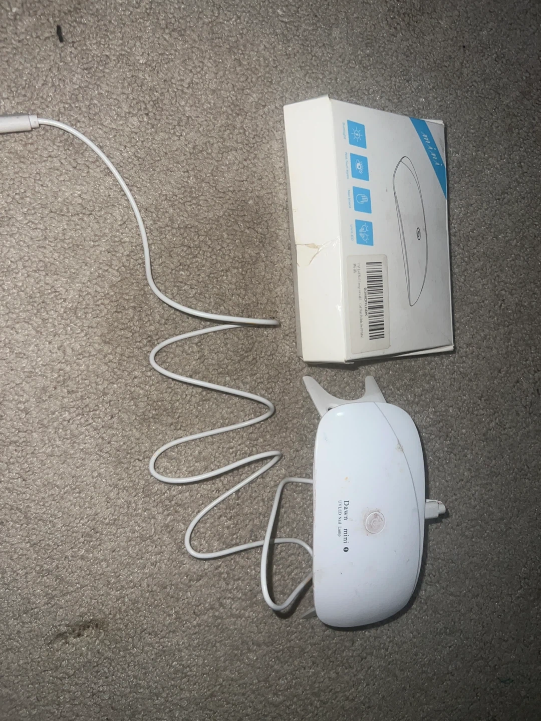 This is a Dawn mini UV/LED nail lamp. It comes with a set of gel polishes, including base coat and matte top coat. Perfect for at-home manicures!