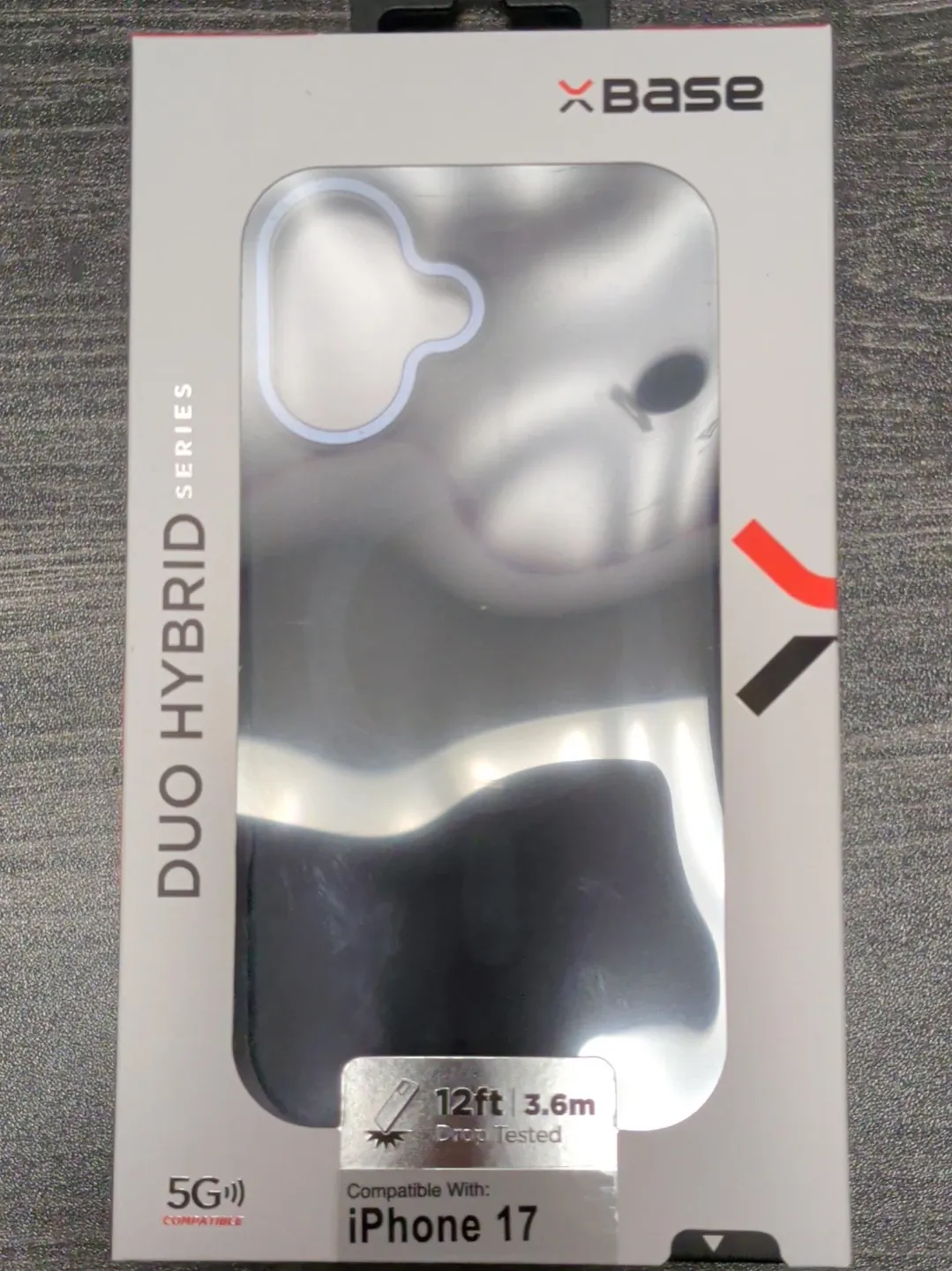 This XBase Duo Hybrid case offers 12ft drop protection. It's compatible with the iPhone 17 and supports 5G. The case is designed for the Duo Hybrid Series.