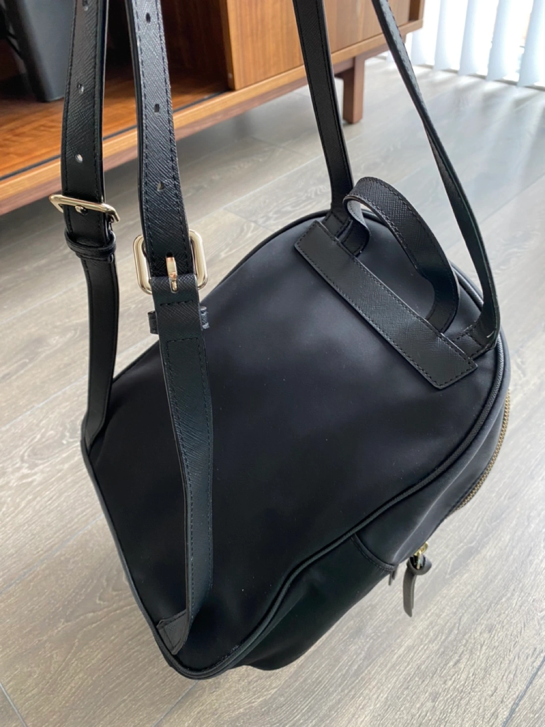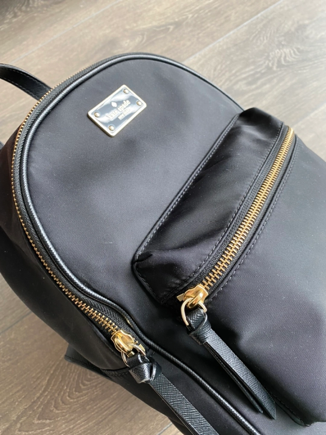 Kate Spade small black nylon backpack.