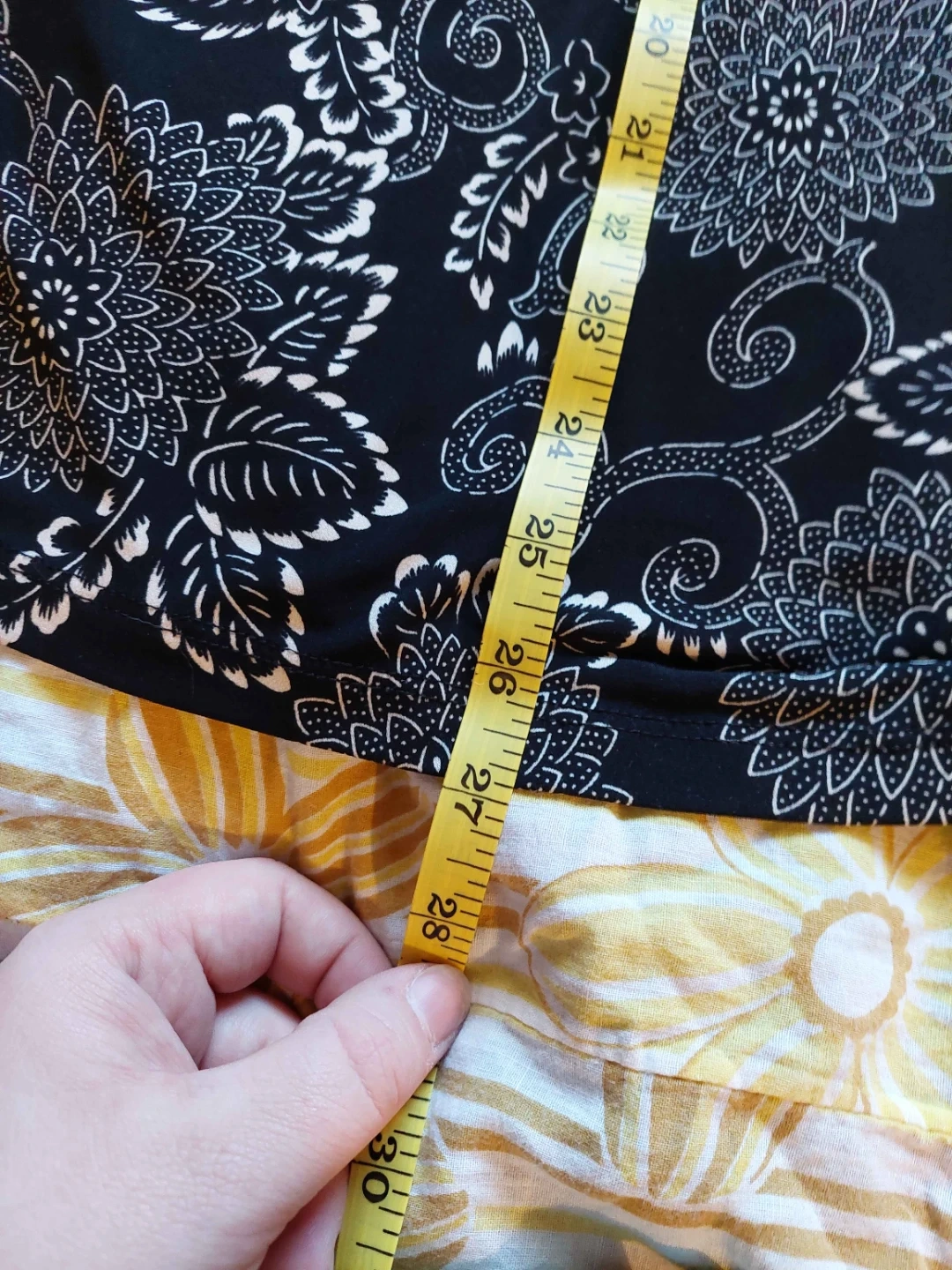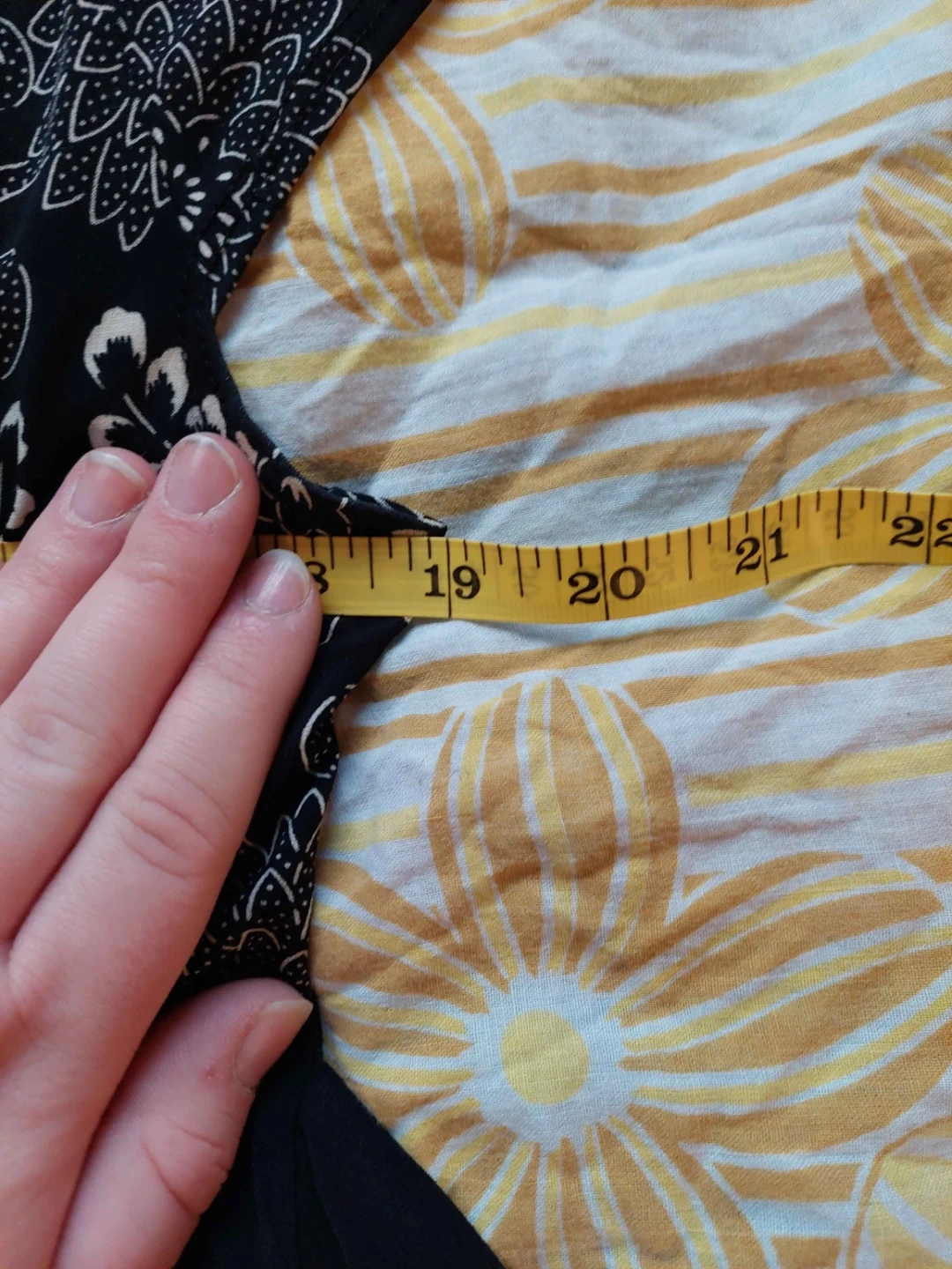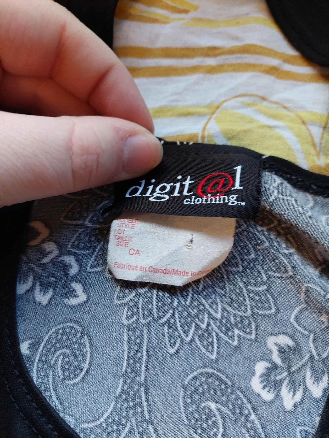 label size XL (it's sooo faint on camera but I swear it's there, you can read 'TG' (French) more) pit to pit laying flat is 19in, length is 27in