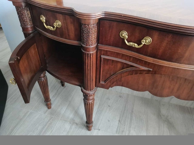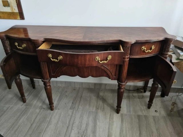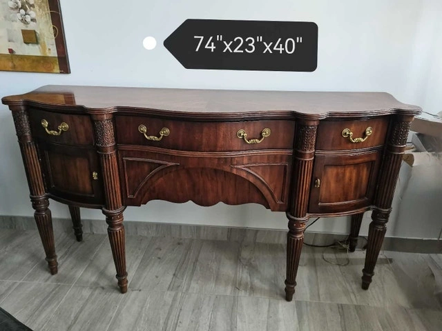 Spruce up your dining area with this elegant Bernhardt sideboard, featuring ample storage with its drawers and cabinets. This used piece measures 74"x23"x40", perfect for adding a touch of sophistication to any room while providing practical utility.