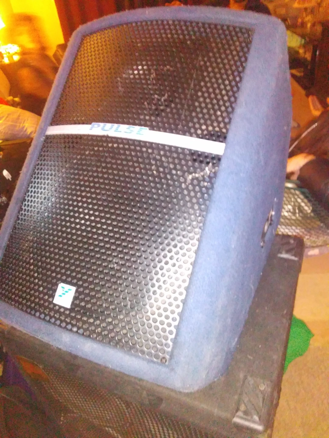 This is a Pulse PM12 professional audio speaker. It's rated for 150 watts program and 8 ohms. All inputs are in parallel.