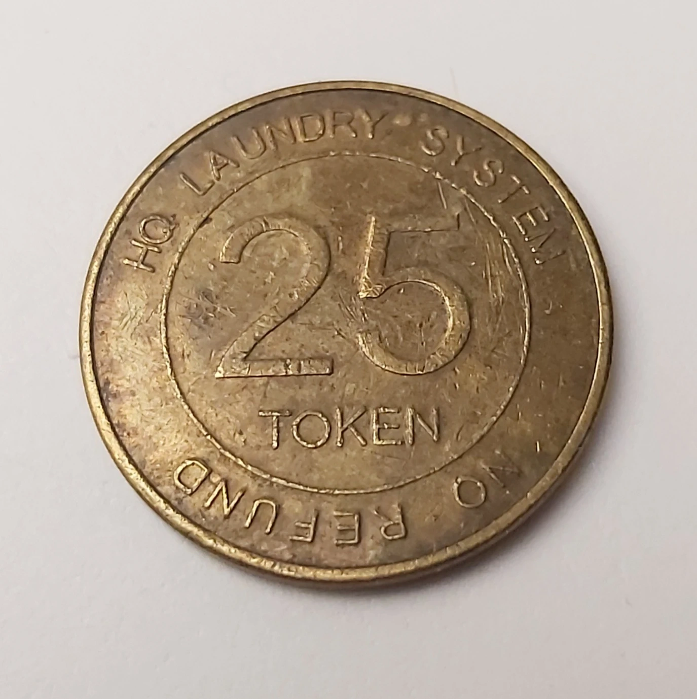 This is a 25 token for the HQ Laundry System. It has no cash value and is not refundable. Same size as a loonie. I found it in my change, so if someone can use it in their laundry room I'm happy to pass it on!