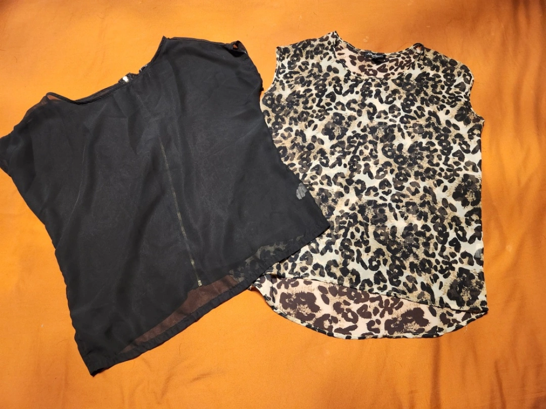 Leopard Print Blouse & Black Blouse - Size Small