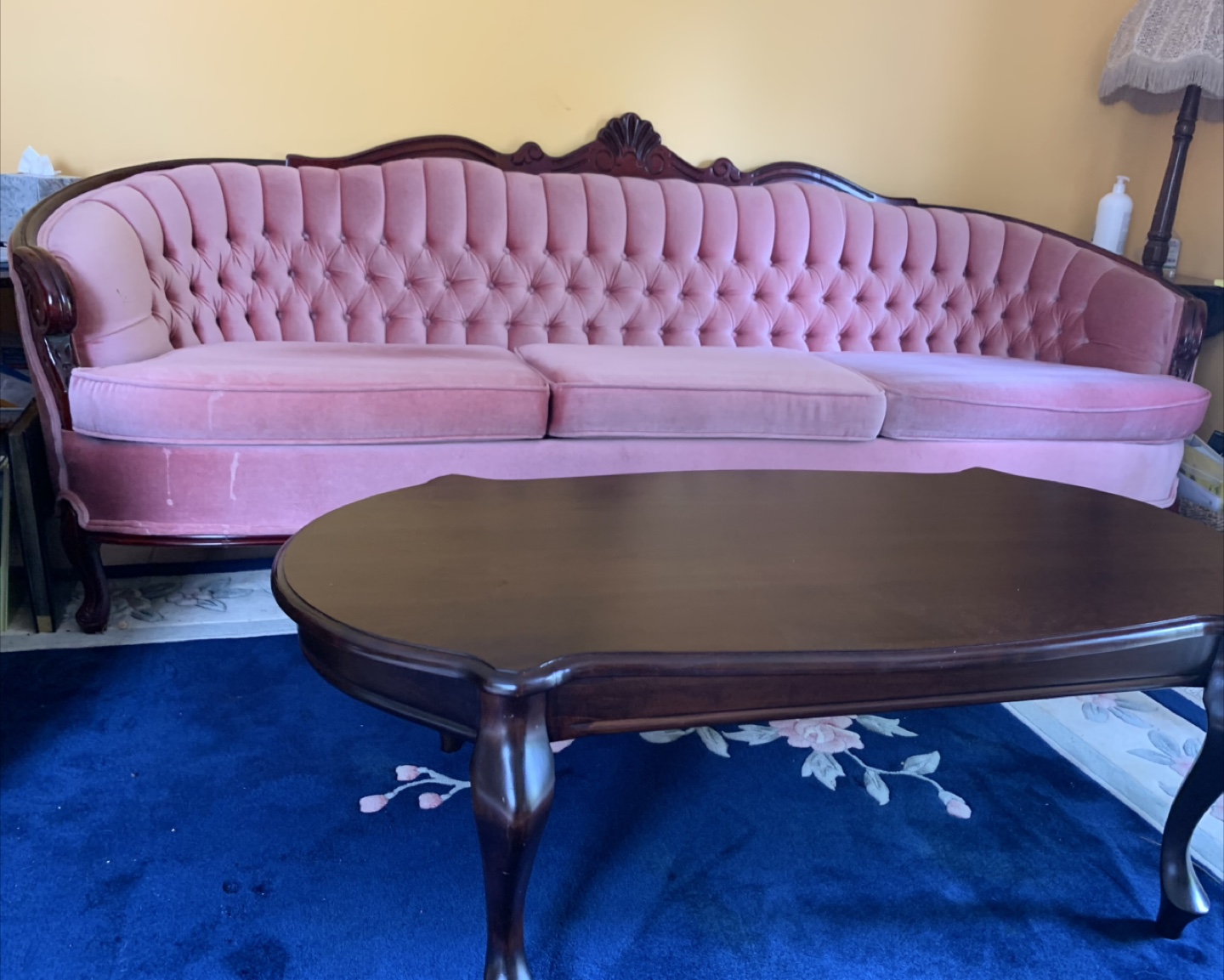Vintage Pink Velvet Sofa & Chair Set