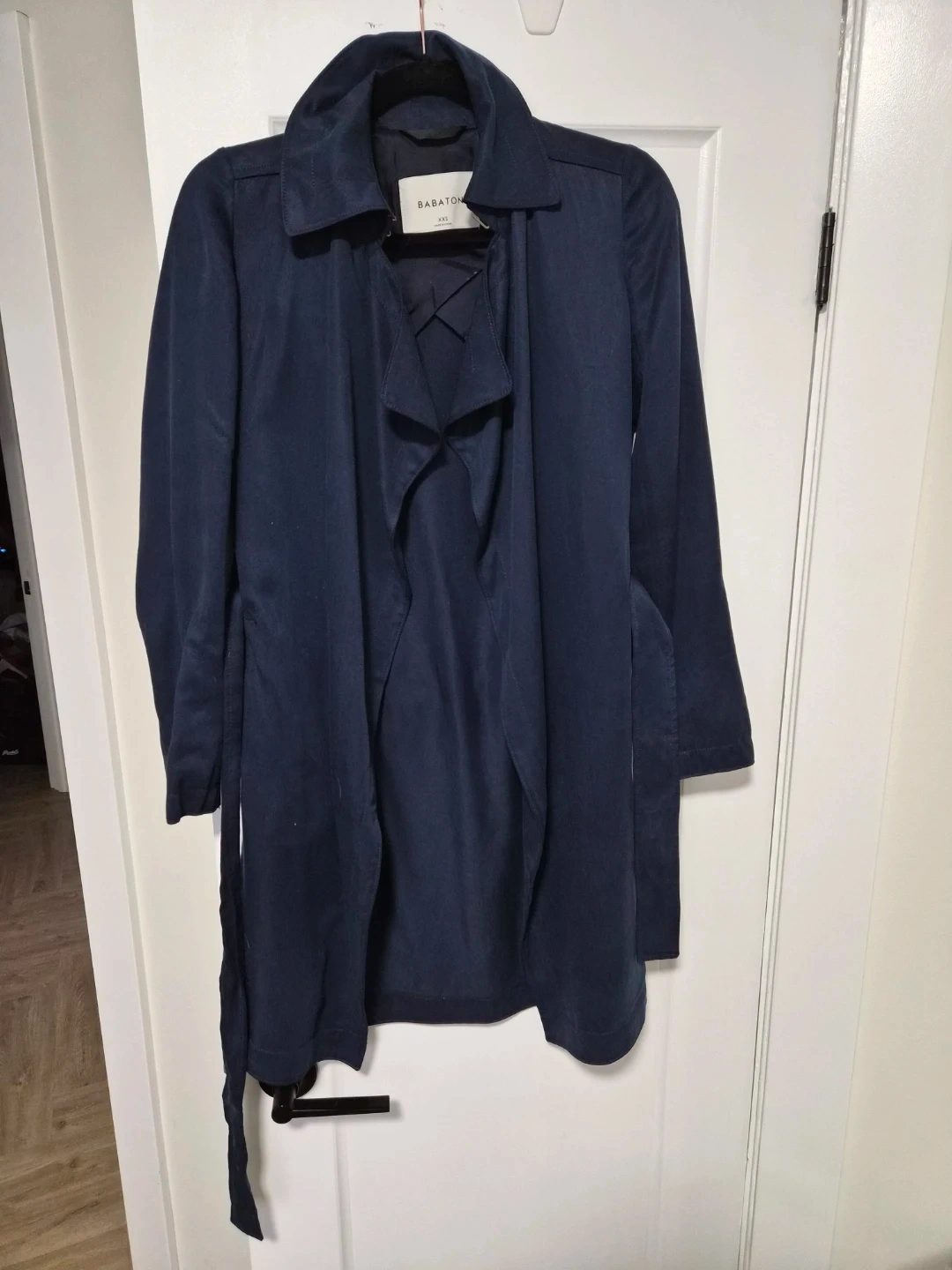 Selling a stylish Babaton Maximo trench coat in size XXS and a lovely navy blue colour! It's in great condition and ready to wear