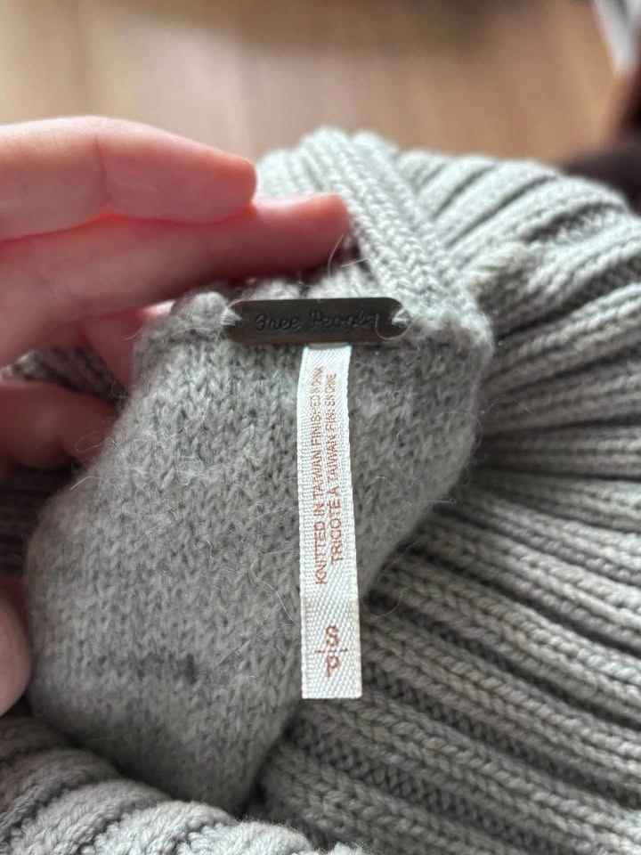 Super cozy sweater, sized "Small" but runs oversized (closer to Large). Love the material and the size of the turtleneck, which can be rolled up or down for style. A rare discontinued find!