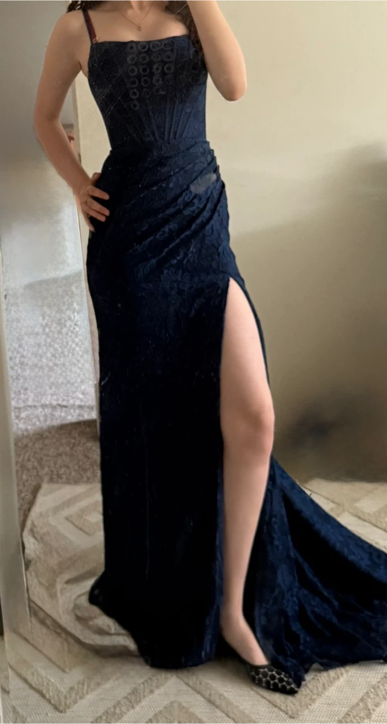 Navy blue dress prom dresses size small red prom dress size small both of them I wear them for once and both of them fit rent not for sale you can pick up the dress the day before your party and return them after the party day