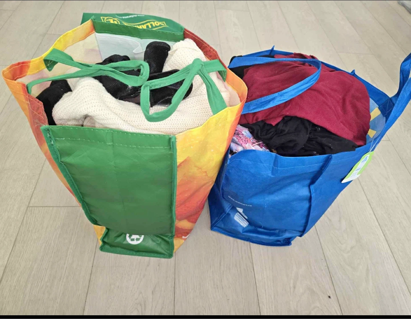 Includes kitchenware like pots, pans, and utensils, plus assorted clothing items and a plaid blanket. Also contains storage containers and cleaning brushes. Great for stocking up your home!