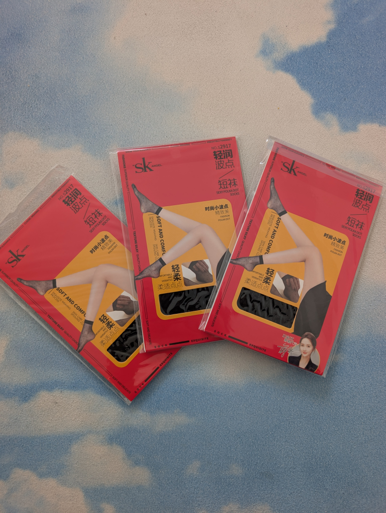 These are soft and comfy with a silky texture. Light and see through with cute tiny poka dots. Great to pair with any shoes.