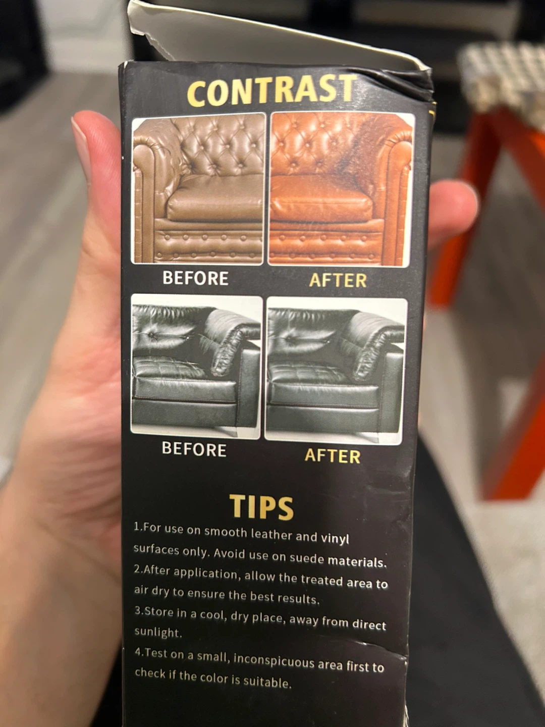 This Clennaner Leather Recoloring Balm is 100ml and renews leather. It restores fading and scratches on smooth leather and vinyl surfaces. Use it to refresh your leather items!