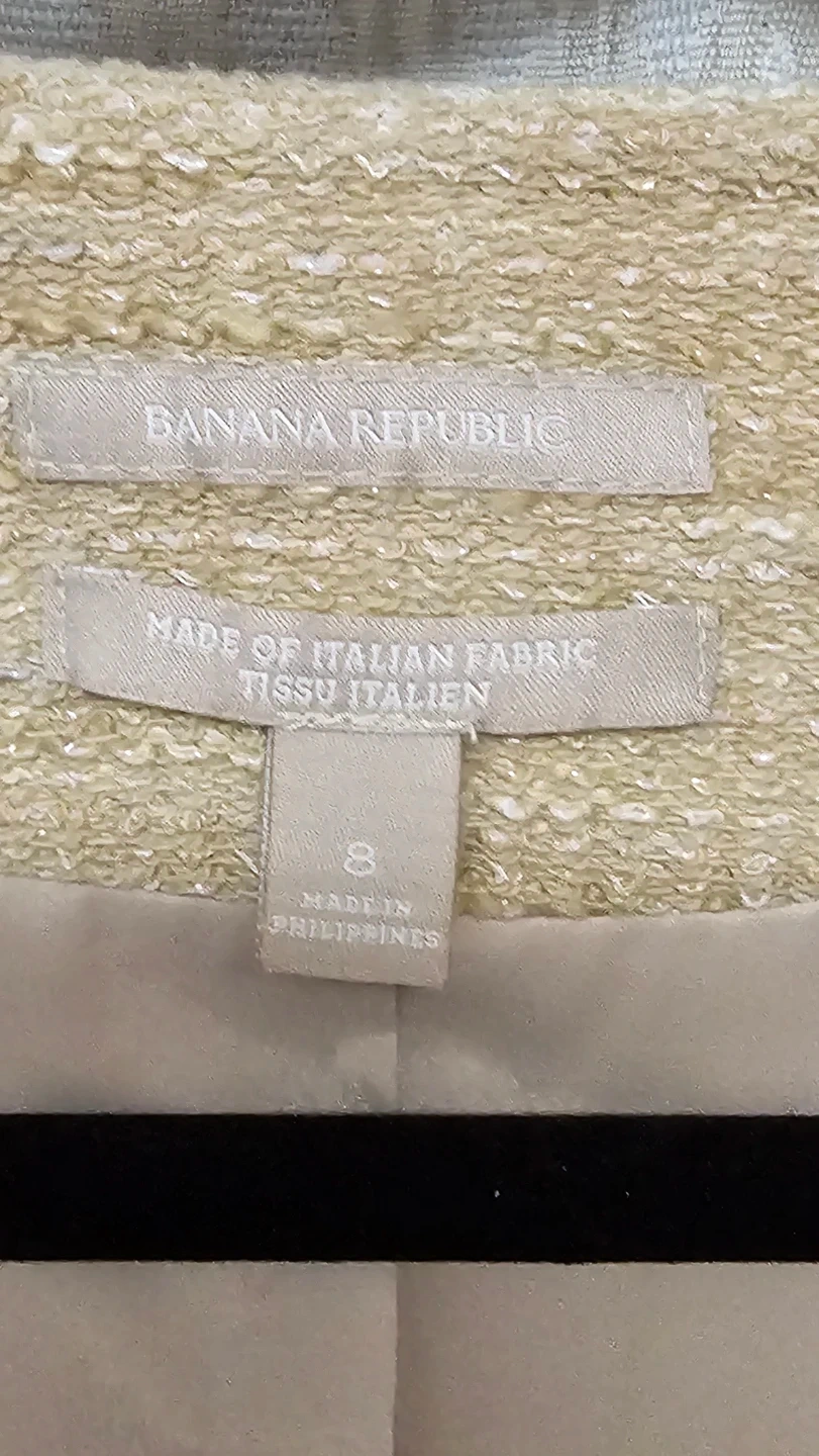Buy & SellBanana Republic Tweed Blazer - Size 8Banana Republic Tweed Blazer - Size 8$25This Banana Republic blazer is made from Italian fabric. It's a size 8 and manufactured in the Philippines. Perfect for dressing up an outfit!ConditionGoodWHERE TO MEETCheck LocationView MapSELLERverifiedKristineBathurst Manor1114 reviews0 chats·0 favorites·5 viewsSEND CHAT TO SELLERHi Kristine! I’m interested in your listing.Hi Kristine! I’m interested in your listing.Get the Karrot app to chatSign In to chat