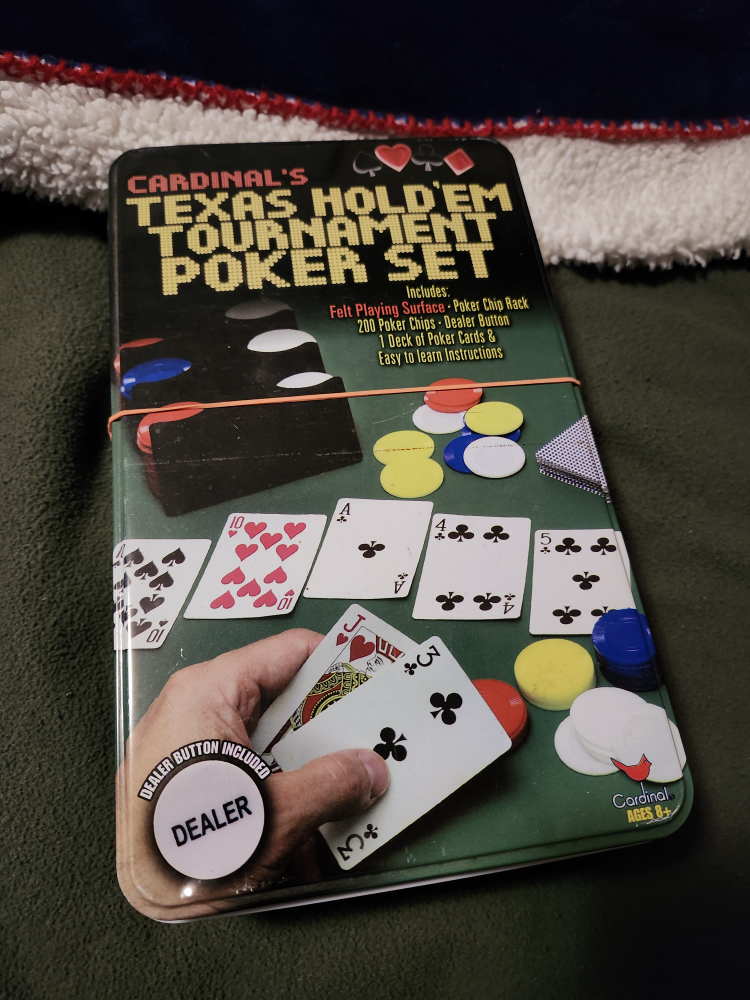 1 / 11 / 1Buy & SellCardinal's Texas Hold'em Tournament Poker SetCardinal's Texas Hold'em Tournament Poker Set$2Felt playing surface, poker chip rack, 200 poker chips, dealer button, deck of poker cards, and easy to learn instructions.ConditionGoodWHERE TO MEETWestway CentreView MapSELLERverifiedElijahKingsview Village1033 reviews1 chats·0 favorites·19 viewsSEND CHAT TO SELLERHi Elijah! I’m interested in your listing.Hi Elijah! I’m interested in your listing.Get the Karrot app to chatSign In to chat
