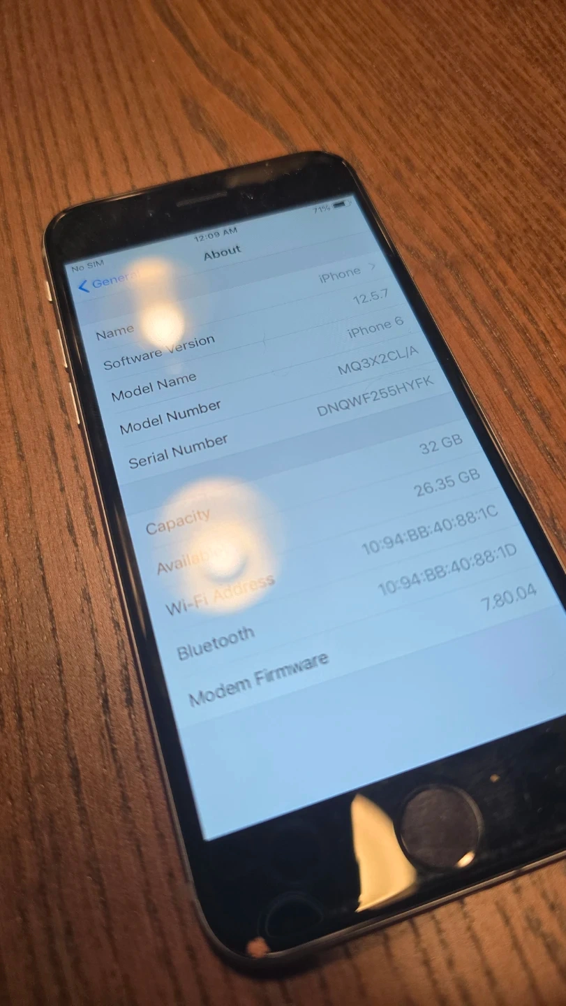 Selling an Apple iPhone 6 with 32 GB storage. It runs on iOS 12.5.7. This phone is a reliable choice for basic smartphone needs.