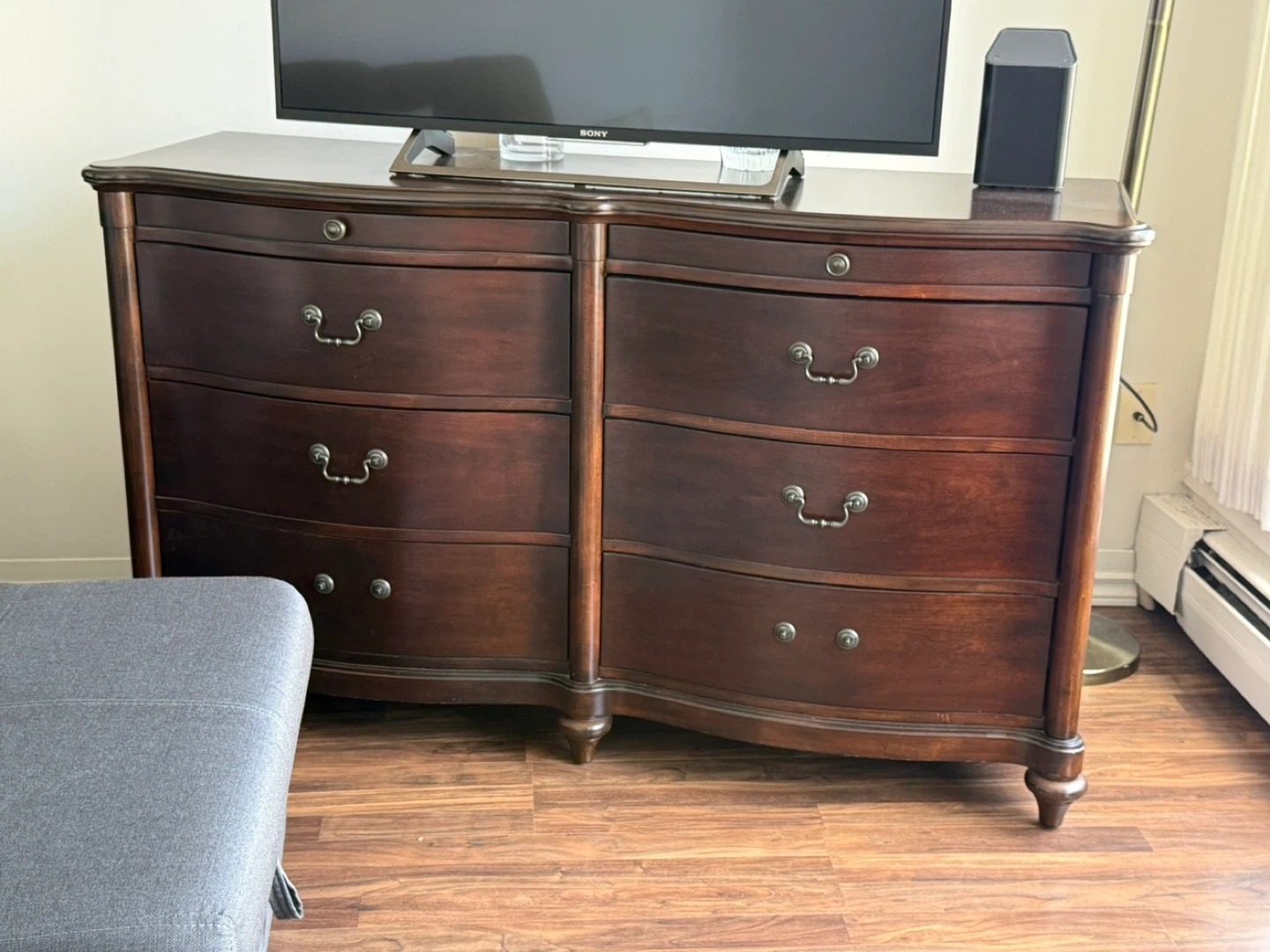Buy & SellDark Wood Dresser with 6 DrawersDark Wood Dresser with 6 Drawers$50Moving out, selling this wood dresser with six drawers. It has a classic design with curved fronts in deep brown.ConditionLike newWHERE TO MEETCheck LocationView MapSELLERTaraW End181 review1 chats·0 favorites·18 viewsSEND CHAT TO SELLERHi Tara! I’m interested in your listing.Hi Tara! I’m interested in your listing.Get the Karrot app to chatSign In to chat