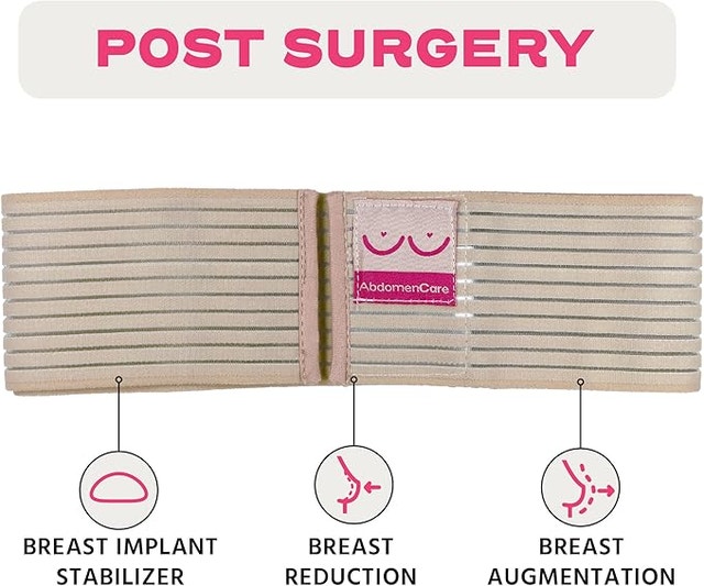 New in package Abdomencare Breast Implant Stabilizer Band. This chest compression wrap is one size and designed for women's post-surgery recovery, including breast augmentation and reduction. Helps with healing.