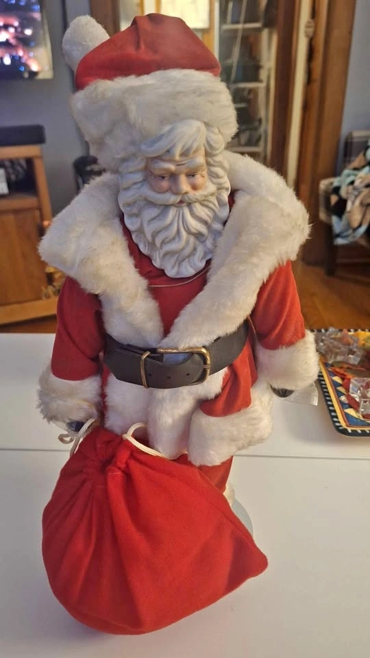 A small, decorative Santa Claus figurine with bright, colorful details would make a lovely addition to any Christmas display. You could place it on a table, shelf, or even under the tree. Its small size and versatility make it easy to display anywhere, adding a touch of festive cheer to your holiday decor. Stands 16 inches.