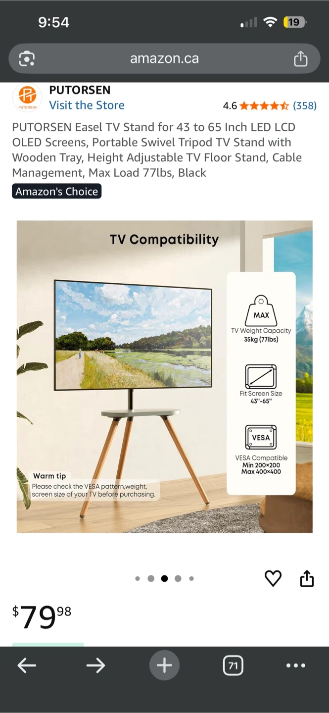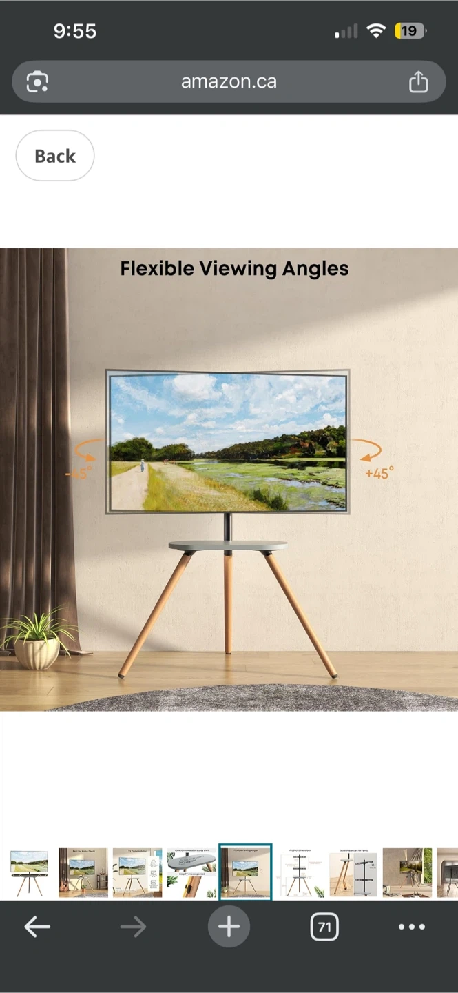 The TV looks great with the stand and gives the room an artistic vibe.