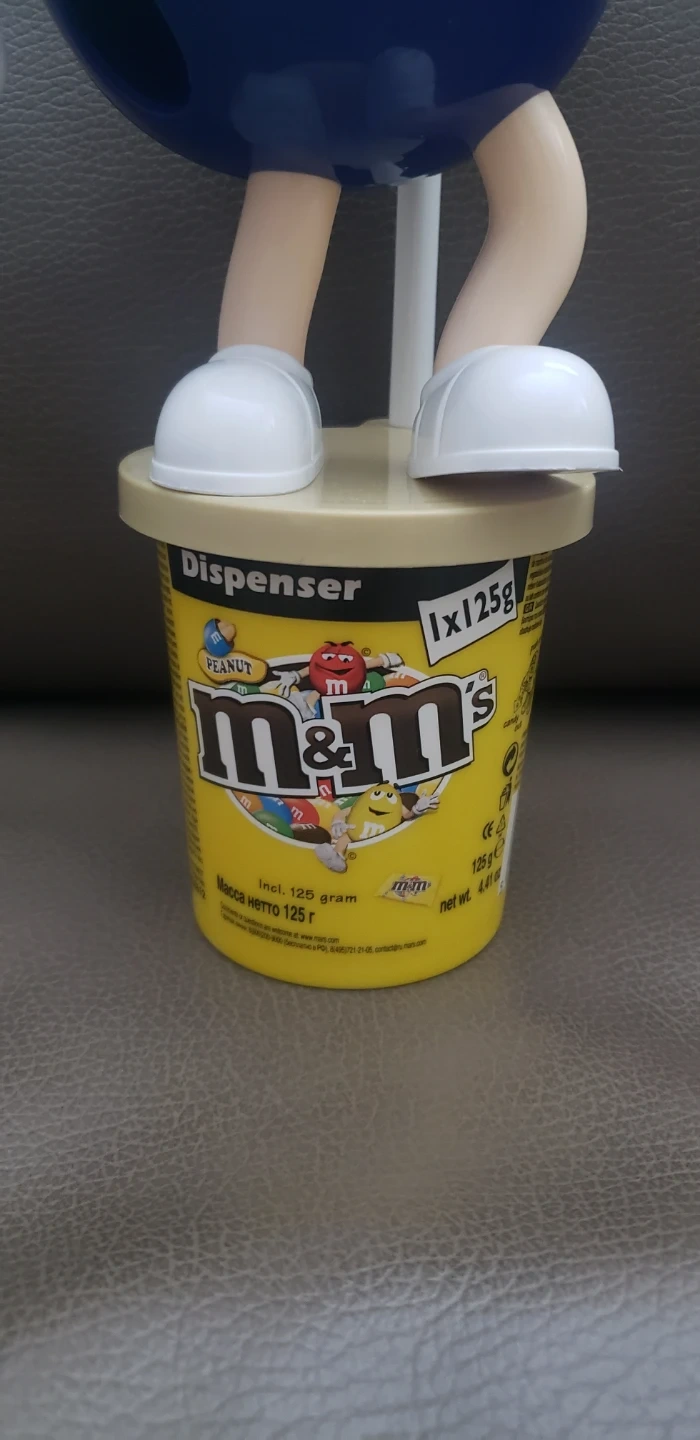 This M&M's dispenser features a blue M&M character dunking a basketball. It comes with a 25g pack of M&M's. It's a fun collectible for fans! Its also a despenser, move the basketball and the hole opens at the bottom.