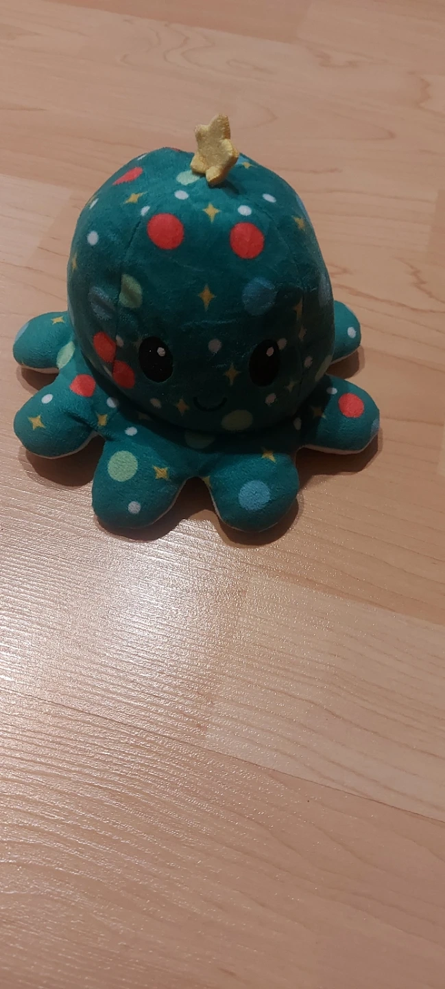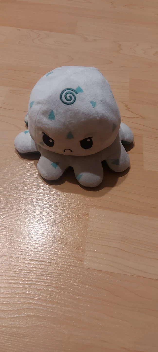 This reversible octopus plush toy flips from a happy face to a grumpy face. It's made of soft plush material and is great for expressing different moods. It's a fun gift for kids of all ages!
