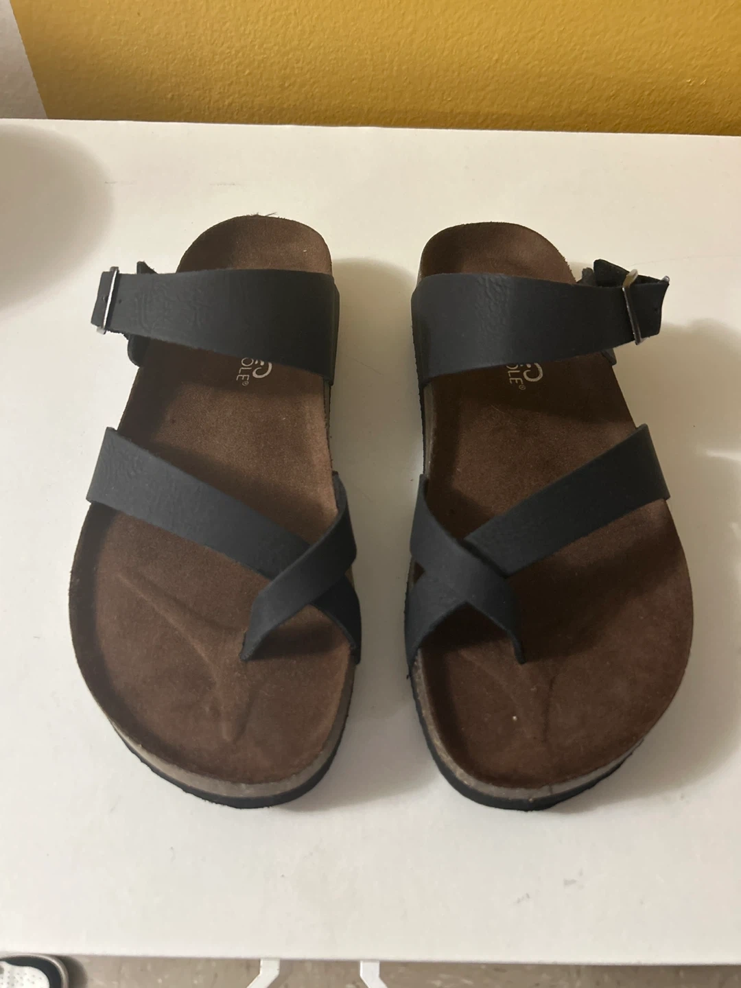 Mountain Sole Black Cork Footbed Sandals size 7 Brand New