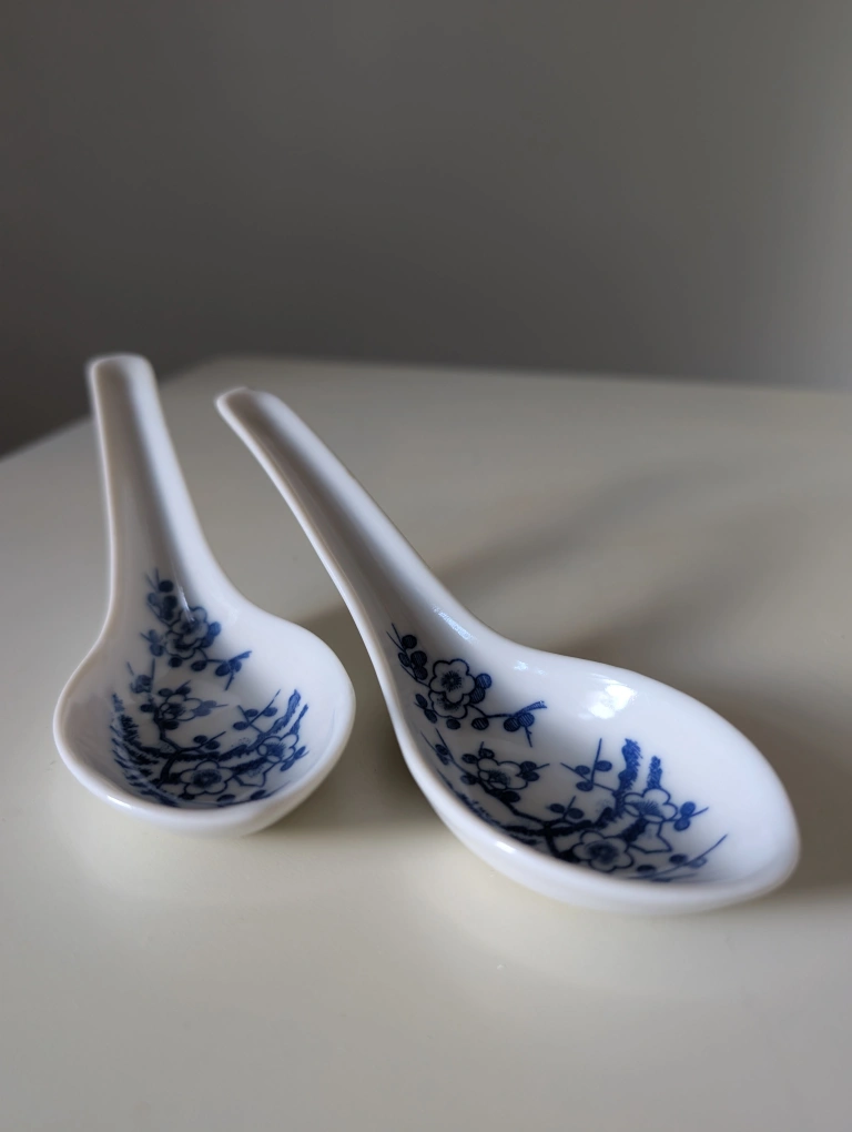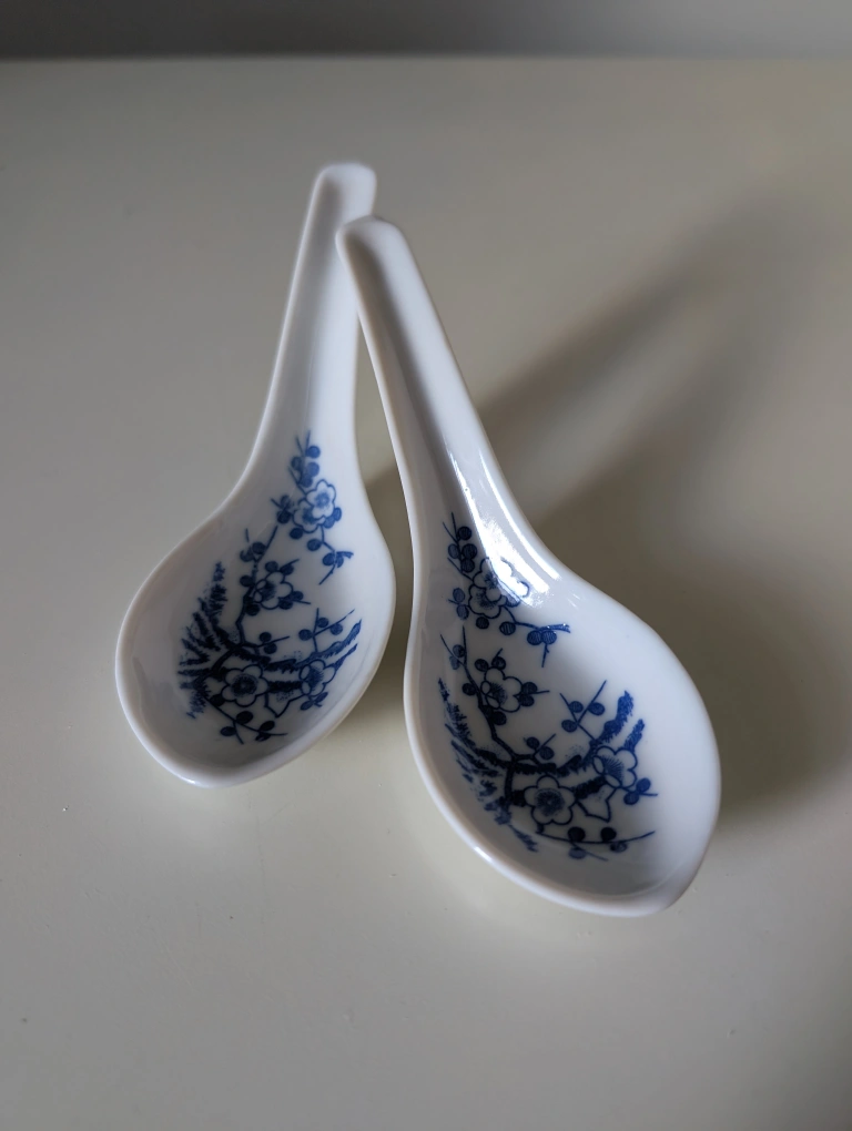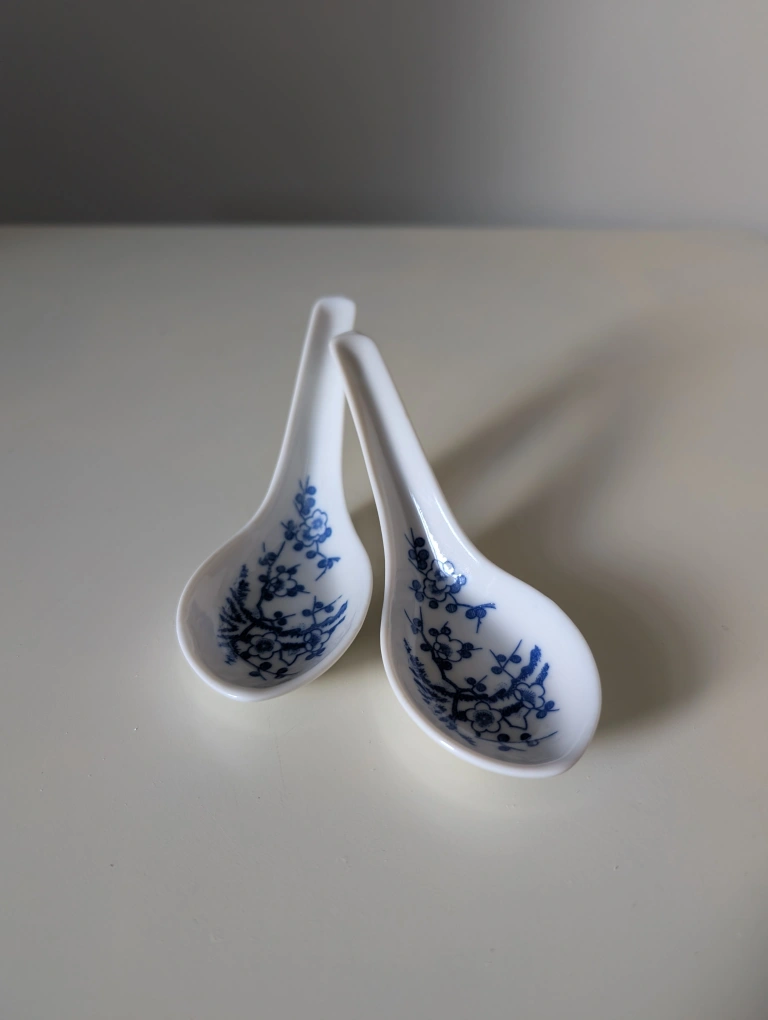 Pair of Vintage Porcelain Soup Spoons