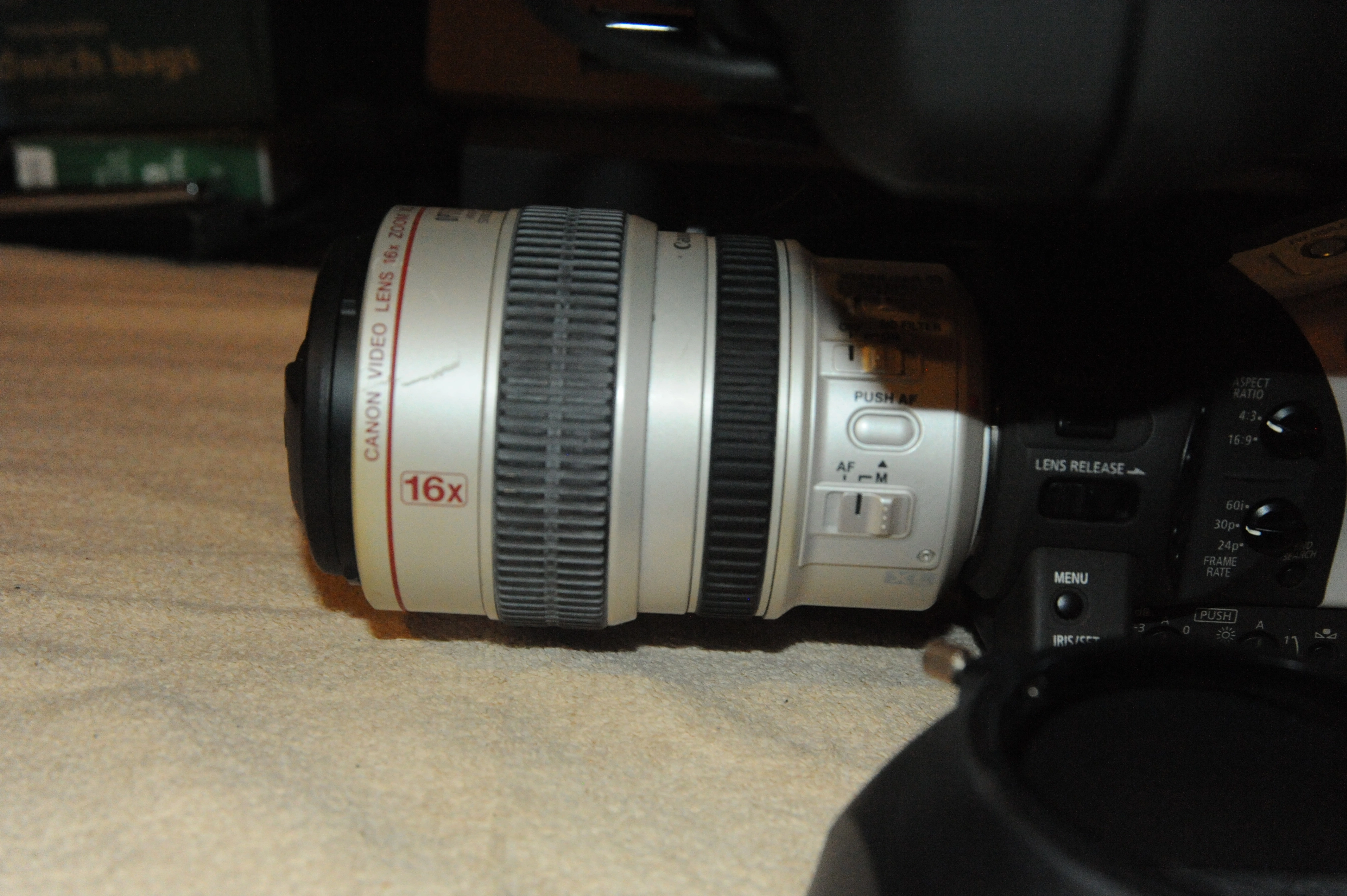 Selling a Canon video lens 16x zoom XL 5.5-88mm. It comes with a charger and a remote control. Also included but not pictured is the coupler for running on household power source.